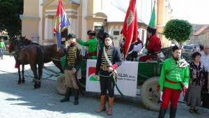 On May 21, 2014 a commemorative ceremony of the 311th anniversary of Ferenc Rákóczi’s unfluring of the flag on May 21, 1703 was organised by the Pro Cultura Subcarpathica Civil Organisation. To mark the events triggering the outbreak of Rákóczi’s War of Independance Kuruts traditionalists marched from Mezővári to Beregszász, unfluring their flags at Kossuth Square.