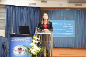 Following the official opening ceremony, a series of presentations took place. Erzsébet D. Molnár gave a lecture titled Scientific Career. She was followed by Krisztián Ábrány, who spoke about career planning. After that, Kamilla Debreceni presented her career path. Finally, Györgyi Oniszkó delivered a talk titled Online Presence – What Does Your Social Media Profile Say About You?