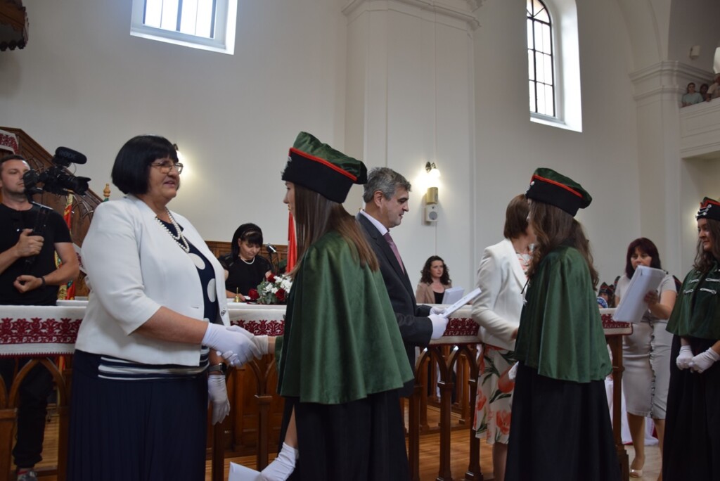 After a general overview of the diplomas, the graduating students received their well-deserved certificates from Ildikó Orosz, the president of Rákóczi College, and István Csernicskó, followed by the Student Hymn.