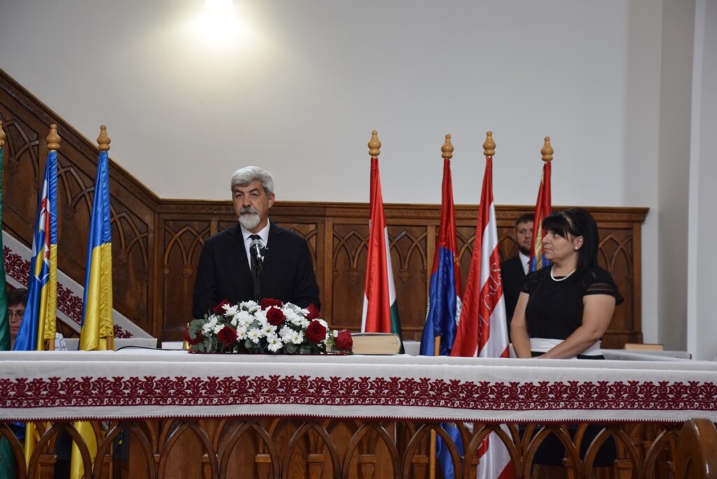 The ceremony began with the entry of historical flags, followed by a welcome speech from Ferenc Taracközi, the senior pastor of the Reformed Congregation in Beregszász. This was followed by our national prayer and the hymn of Rákóczi College. The attendees then observed a one-minute silence in memory of the victims of war and the recent deceased staff members of the college.