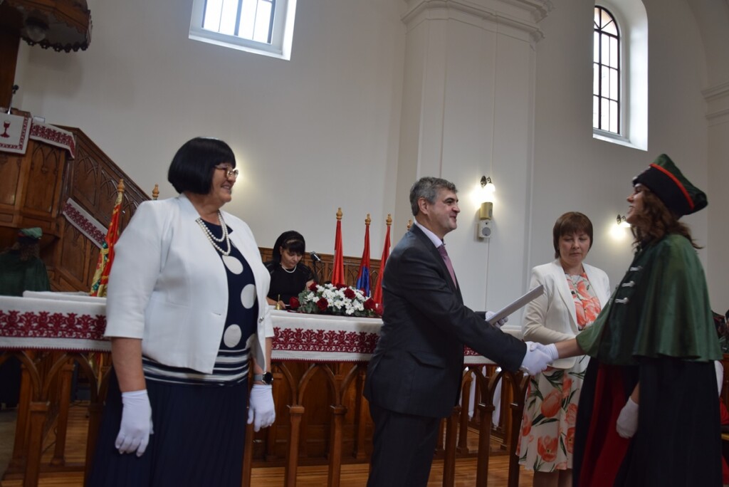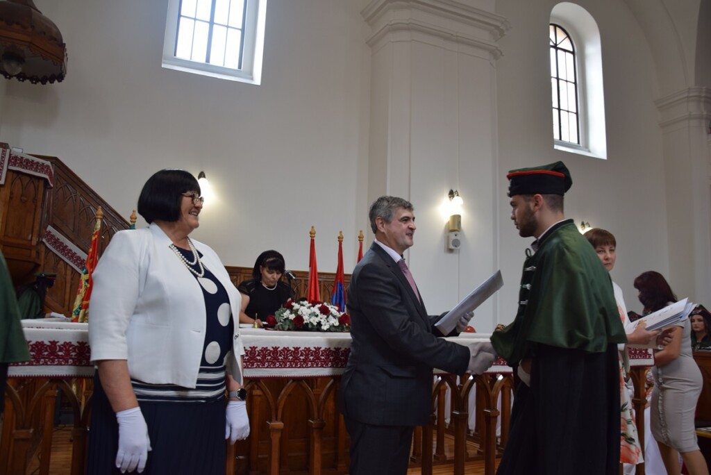 On June 28th, the Ferenc Rakoczi II Transcarpathian Hungarian College of Higher Education held a diploma award ceremony. The event took place at the Reformed Church in Beregszász. This year, a total of 160 students completed their undergraduate studies and 60 students completed their graduate studies, receiving their respective diplomas. Among them, 2 undergraduate and 6 graduate students were awarded with distinction.