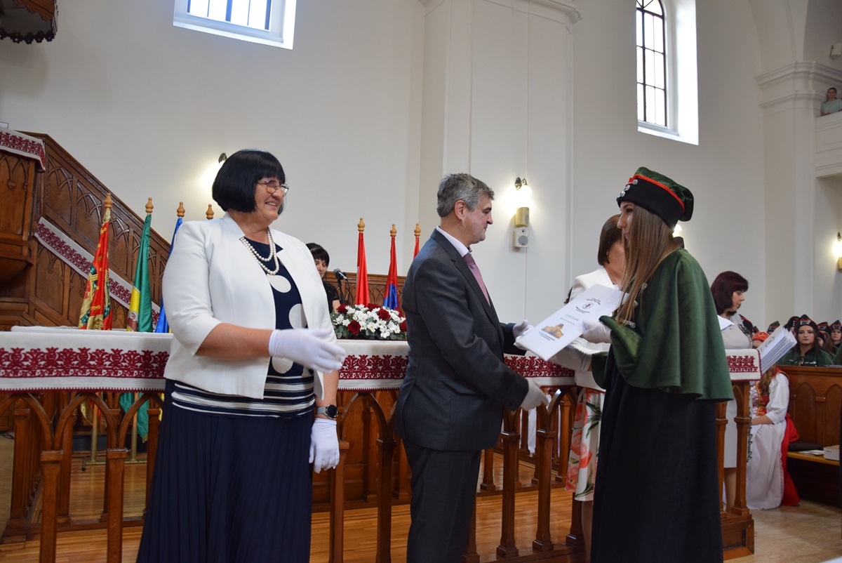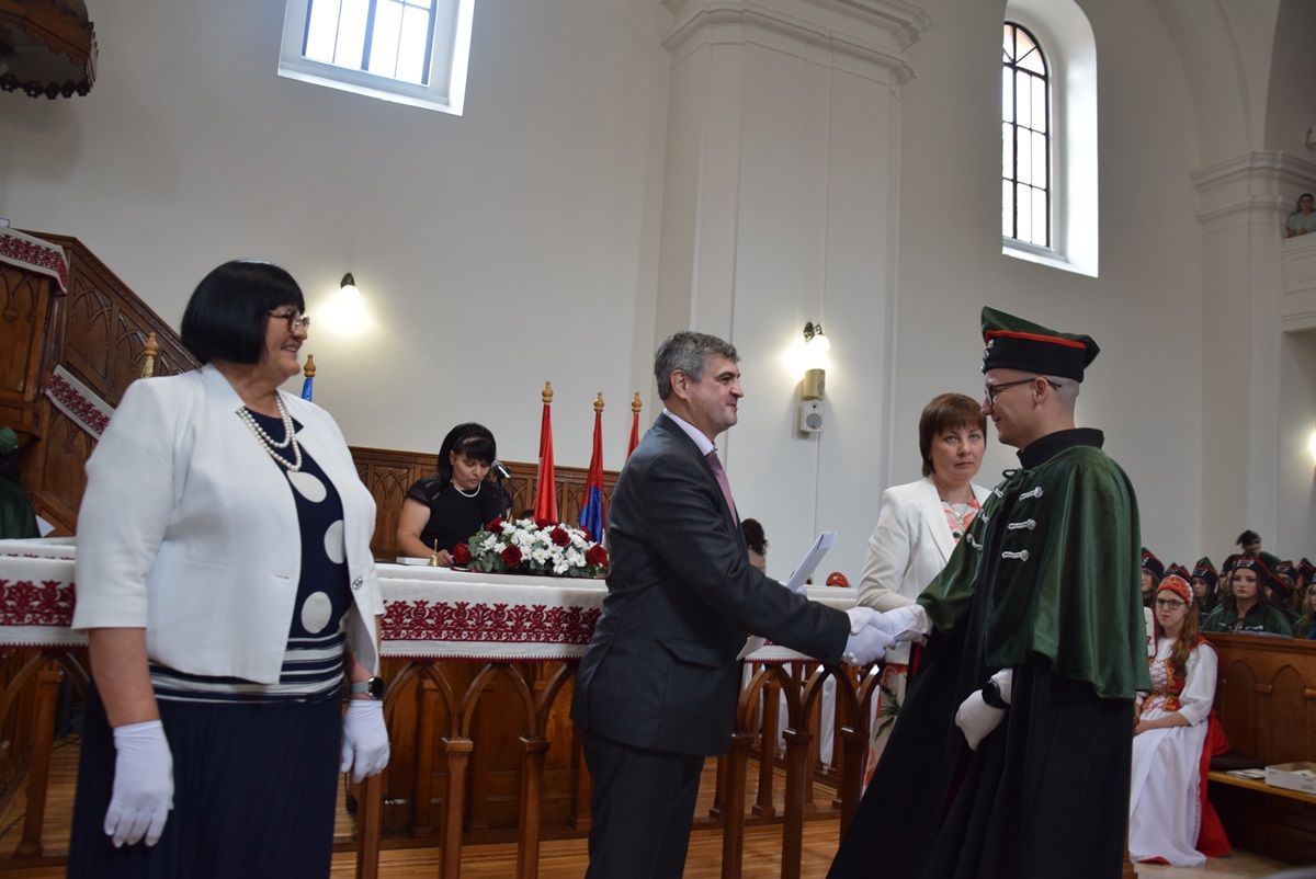 On June 28th, the Ferenc Rakoczi II Transcarpathian Hungarian College of Higher Education held a diploma award ceremony. The event took place at the Reformed Church in Beregszász. This year, a total of 160 students completed their undergraduate studies and 60 students completed their graduate studies, receiving their respective diplomas. Among them, 2 undergraduate and 6 graduate students were awarded with distinction.