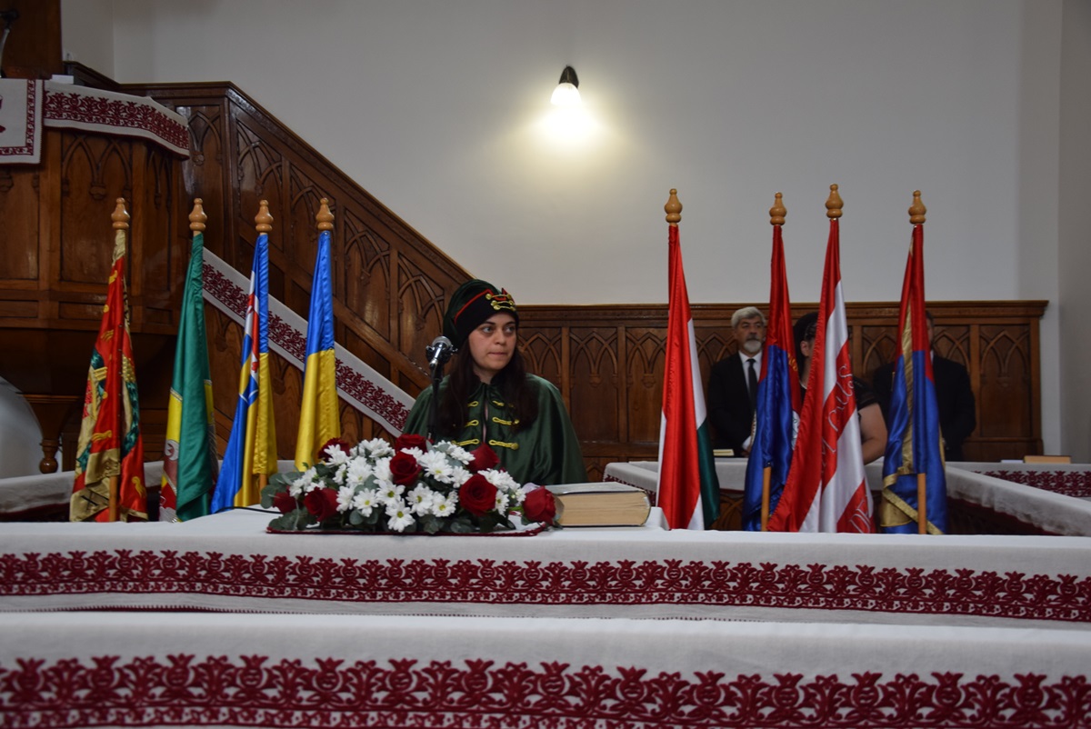Following that, on behalf of the graduating students, Krisztián Váradi, a Hungarian major student, expressed gratitude. Then came the students’ pledge, read by Bernadett Bíró, a graduating student majoring in Hungarian.
