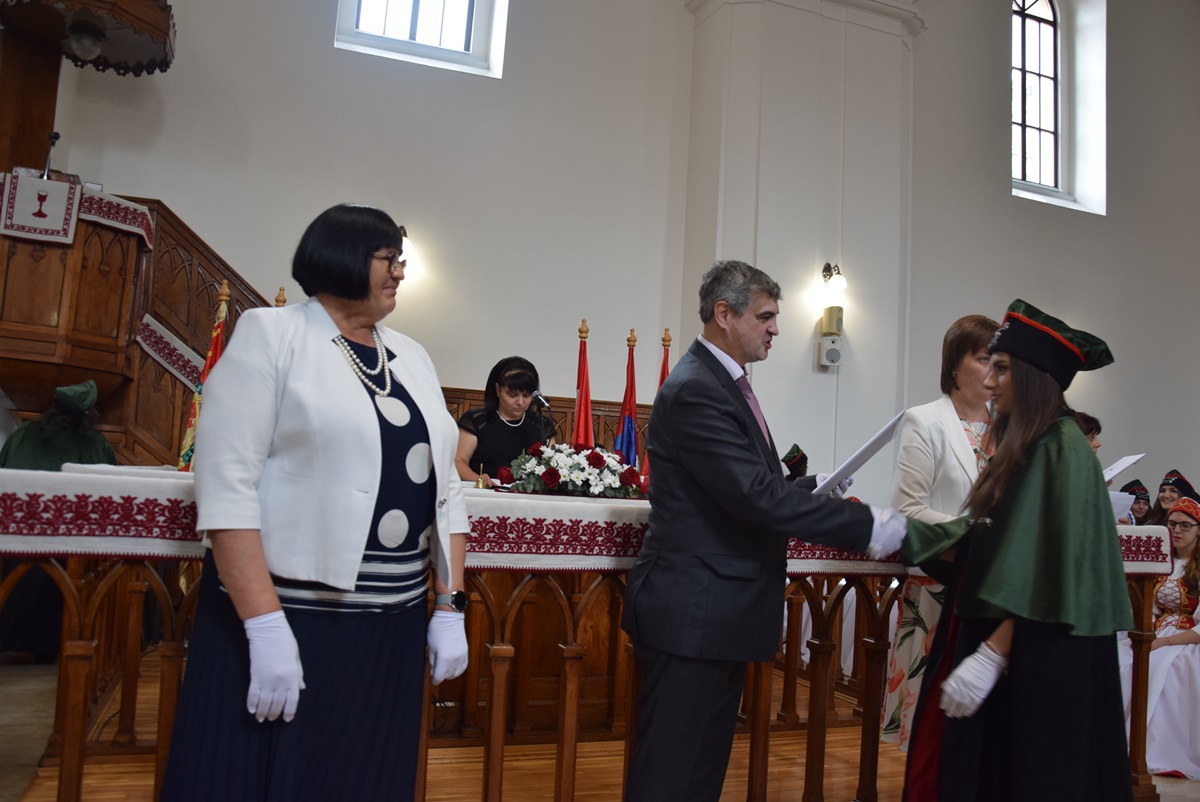 After a general overview of the diplomas, the graduating students received their well-deserved certificates from Ildikó Orosz, the president of Rákóczi College, and István Csernicskó, followed by the Student Hymn.
