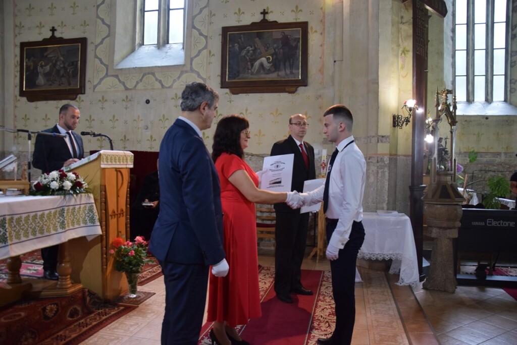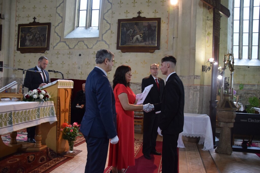 The students majoring in applied mathematics at the Ferenc Rákóczi II Transcarpathian Hungarian College’s Vocational High School received their diplomas on July 7th. The ceremony took place at the Roman Catholic Church in Beregszász.