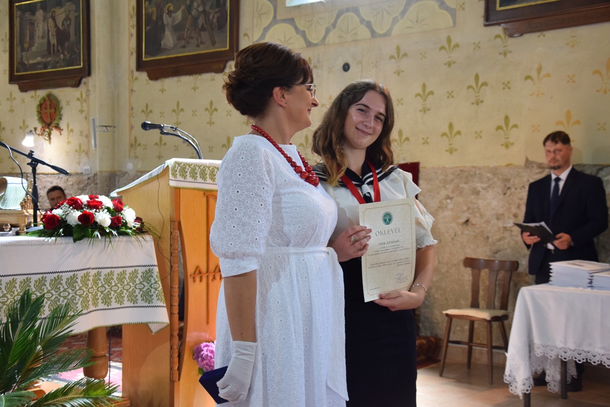 Next, the third-year students of the Vocational High School bid farewell to their peers, with Edina Bahus, a tourism student, giving a speech, and Anasztázia Taracközi, a preschool education student, reciting a poem.
