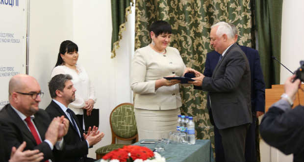 The leaders of the Hungarian higher education institutions also delivered speeches: the representatives of the University of Nyíregyháza, Szent István University and the University of Debrecen also congratulated the Institute, and wished every success in implementing its plans. Vice-Rector of the University of Debrecen András Jávor came with good tidings to Transcarpathia, announcing that the new chapter of cooperation between the educational establishments would become the expanding of the professional palette of Rákóczi Institute with new degree courses commencing in September. On behalf of the University of Debrecen Vice-Rector presented the Institute with the Pro Universitate Award.