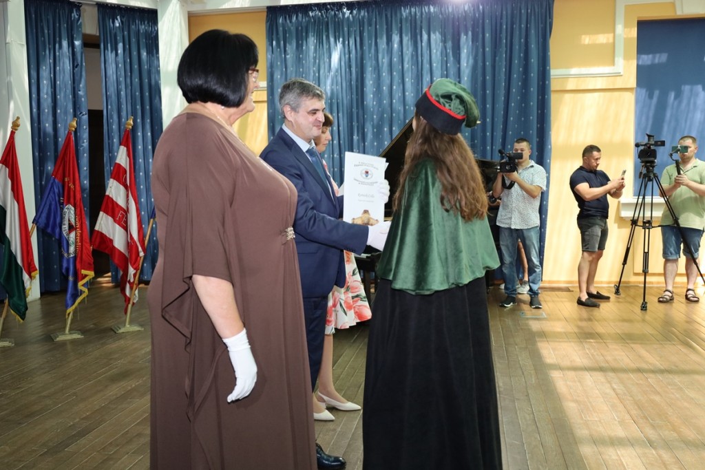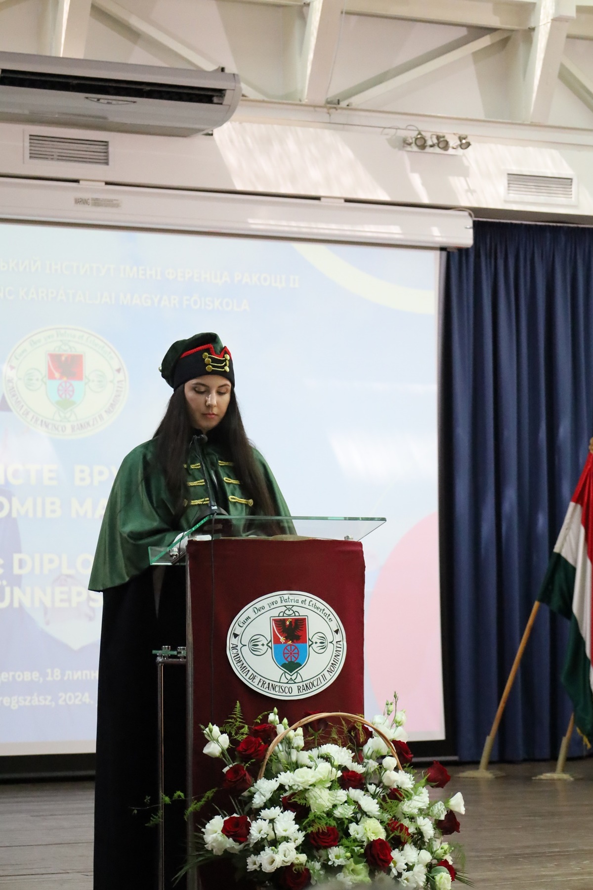 On behalf of the graduating students, Katalin Mészár, a Hungarian major and full-time student, expressed gratitude to the teachers and parents, bidding farewell to the alma mater and fellow students.