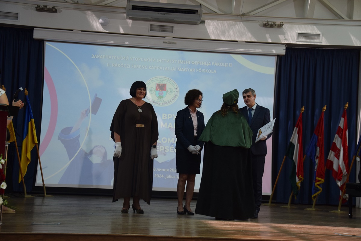 The graduates then received their well-deserved diplomas from Ildikó Orosz, the president of the Rákóczi College and István Csernicskó. For those participating in the joint program with the University of Miskolc, in addition to the college’s leaders, Zita Horváth, the rector of the University of Miskolc, also congratulated. This was followed by the student anthem.