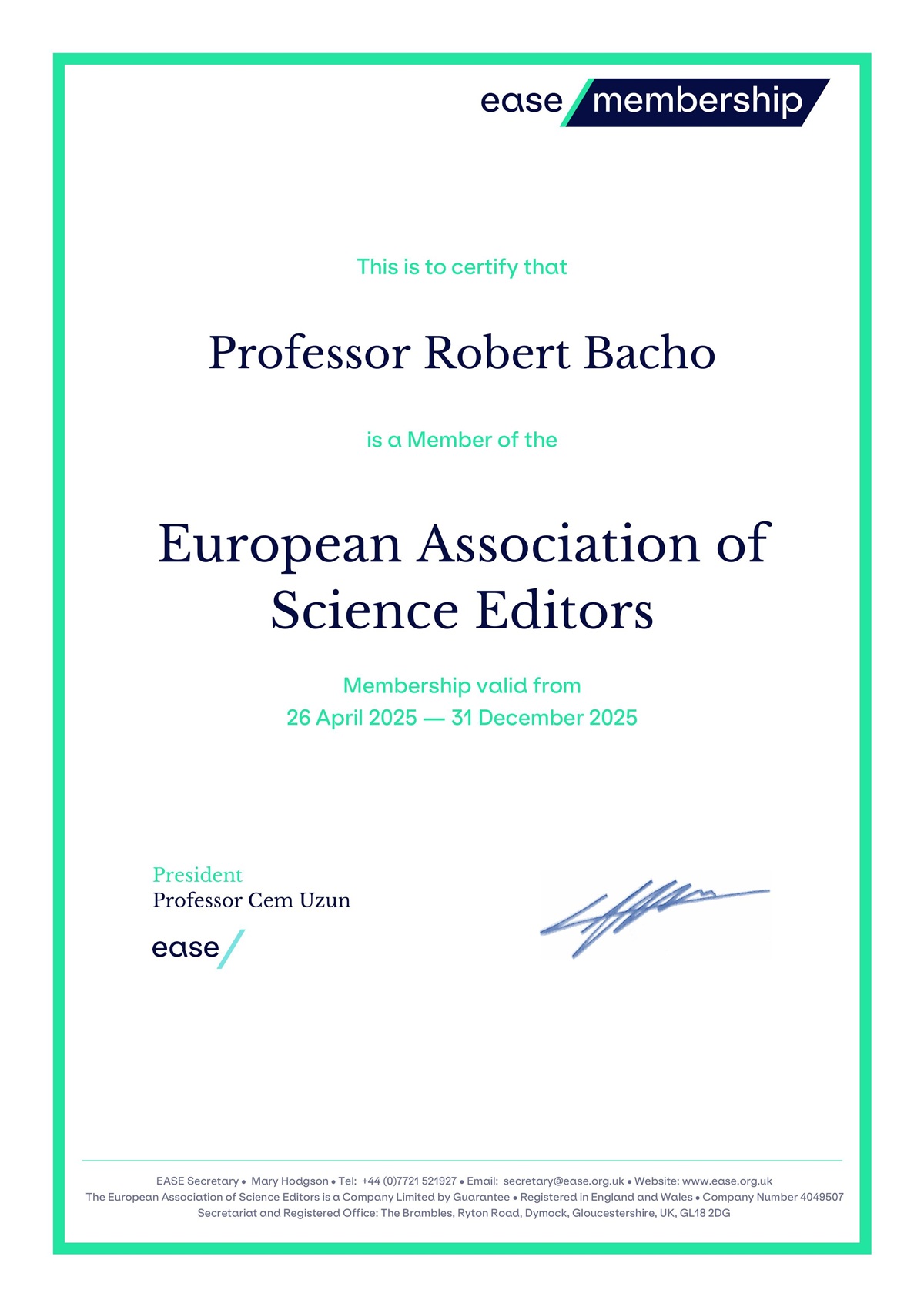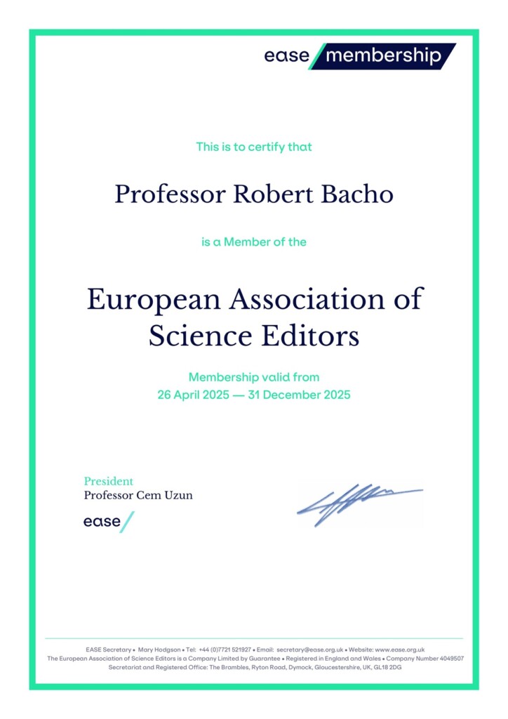 Membership of the Editorial Board Members of Acta Academiae Beregsasiensis. Economics in the European Association of Science Editors (EASE)