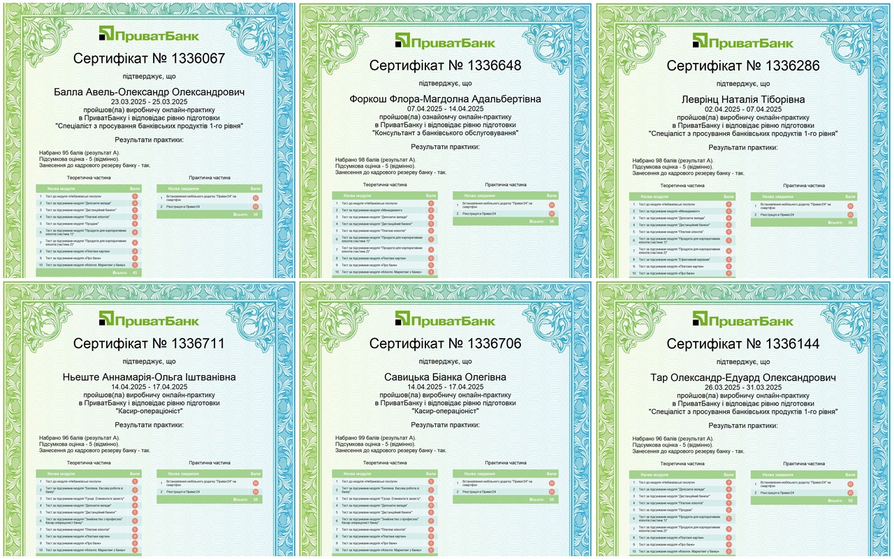 Upon completing the internship, students received certificates confirming their high level of professional competence. Successful completion of the program opens opportunities for future employment at JSC PrivatBank, with the best-performing interns being included in the bank’s talent pool.