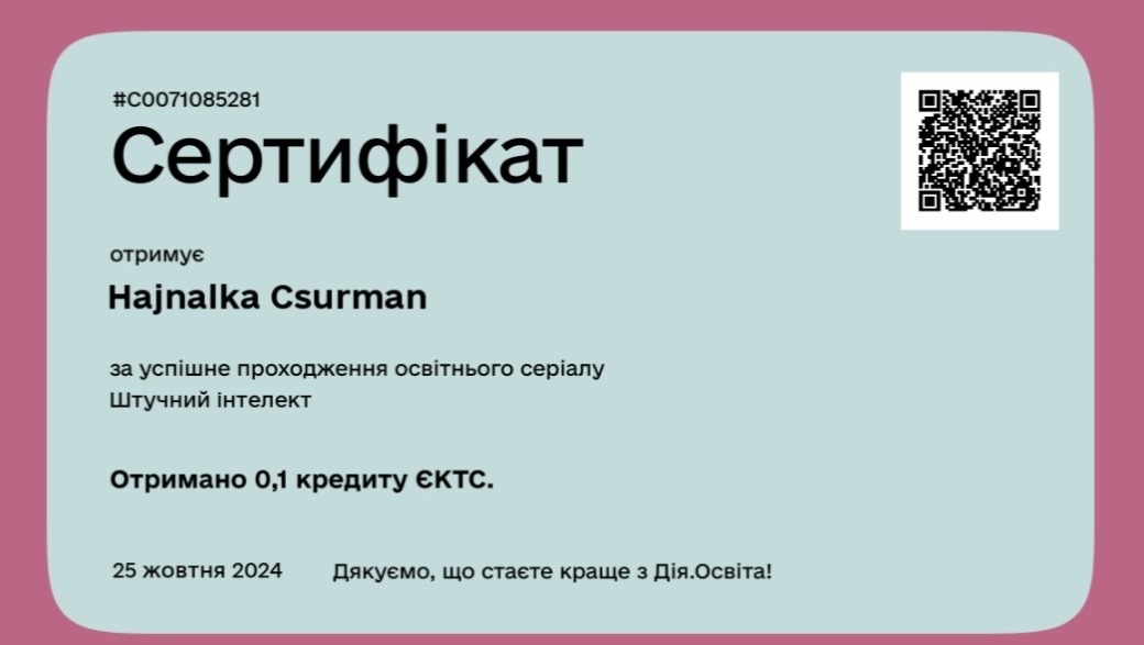 In October 2024, as part of the course “Modern Information Systems and Technologies in Economics,” higher education students completed an Artificial Intelligence training programme on the Diia. Education platform.