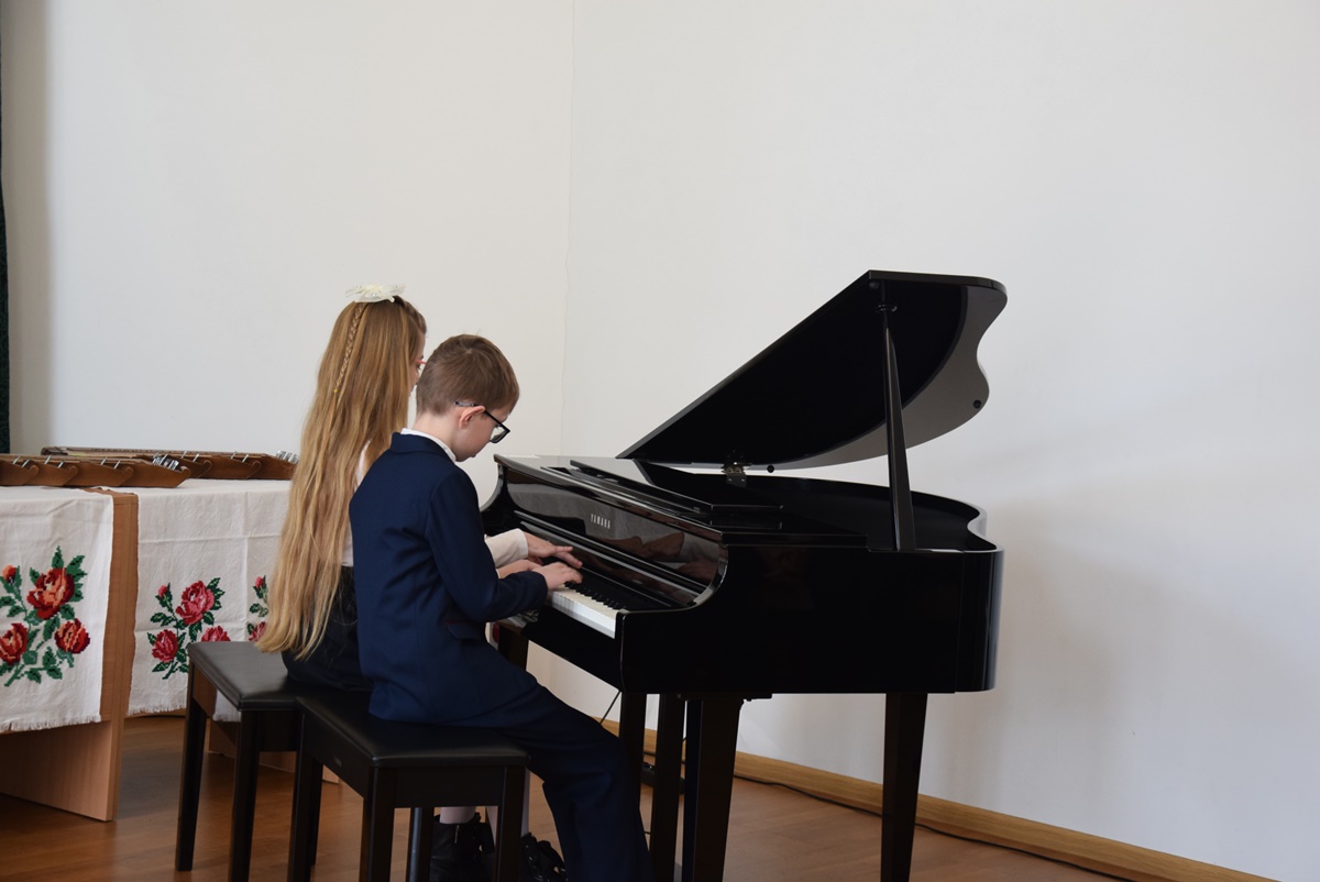 After the greetings, Benjámin Bobály and Anna-Bella Lőrinc, students of the Zoltán Kodály Fine Arts School in Beregszász, performed Aram Khachaturian’s “Galop.” Their mentor was Mária Roszoha.