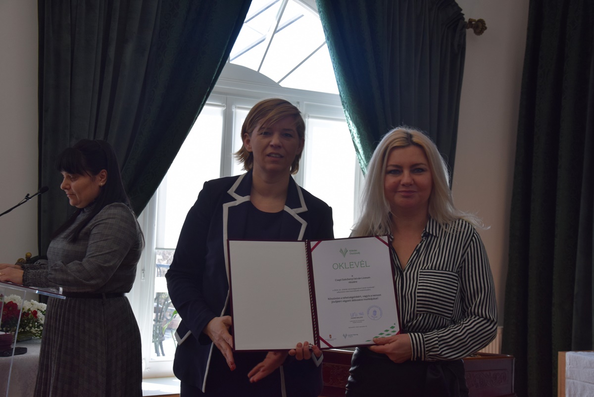 Following this, the teachers from the High School in Papi, the Hungarian-language Reformed Lyceum in Péterfalva, the Ferenc Kölcsey Primary and Secondary Education Institution in Péterfalva, the Secondary School in Salánk, the High School in Som, the Hungarian-language Lyceum in Técső, the Tulipán Tanoda Hungarian School of Folk Music and Folk Art, the Gábor Dayka Lyceum in Ungvár, the Secondary School in Verbőc, and the Ferenc Kölcsey Lyceum in Visk received their certificates.