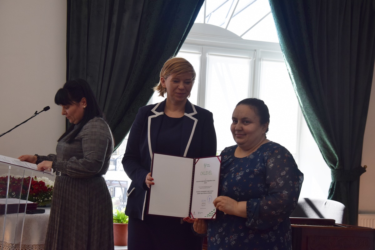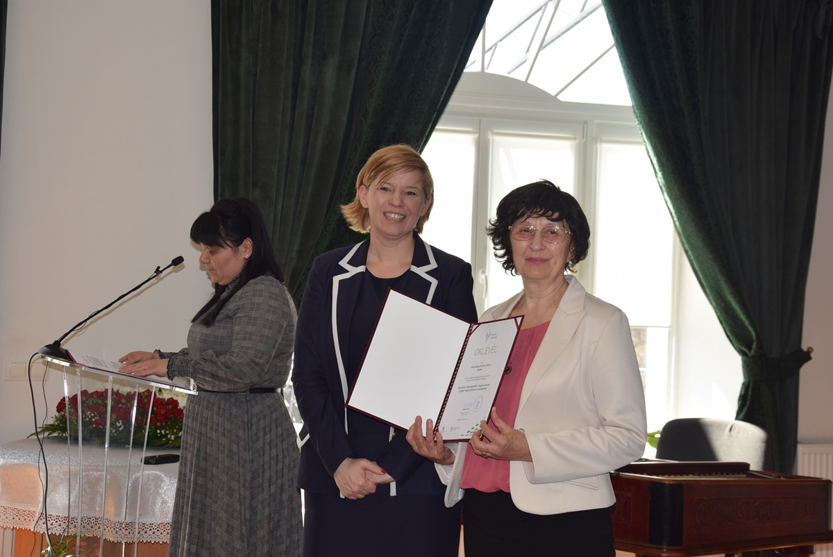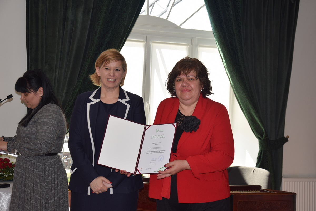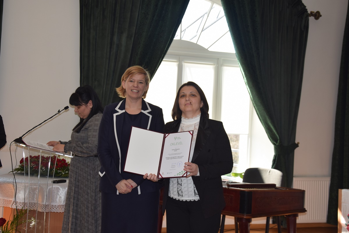congratulated the teachers Natália Váradi, head of the Adult Education Center at the Rákóczi College and director of the “GENIUS” Charity Foundation.
