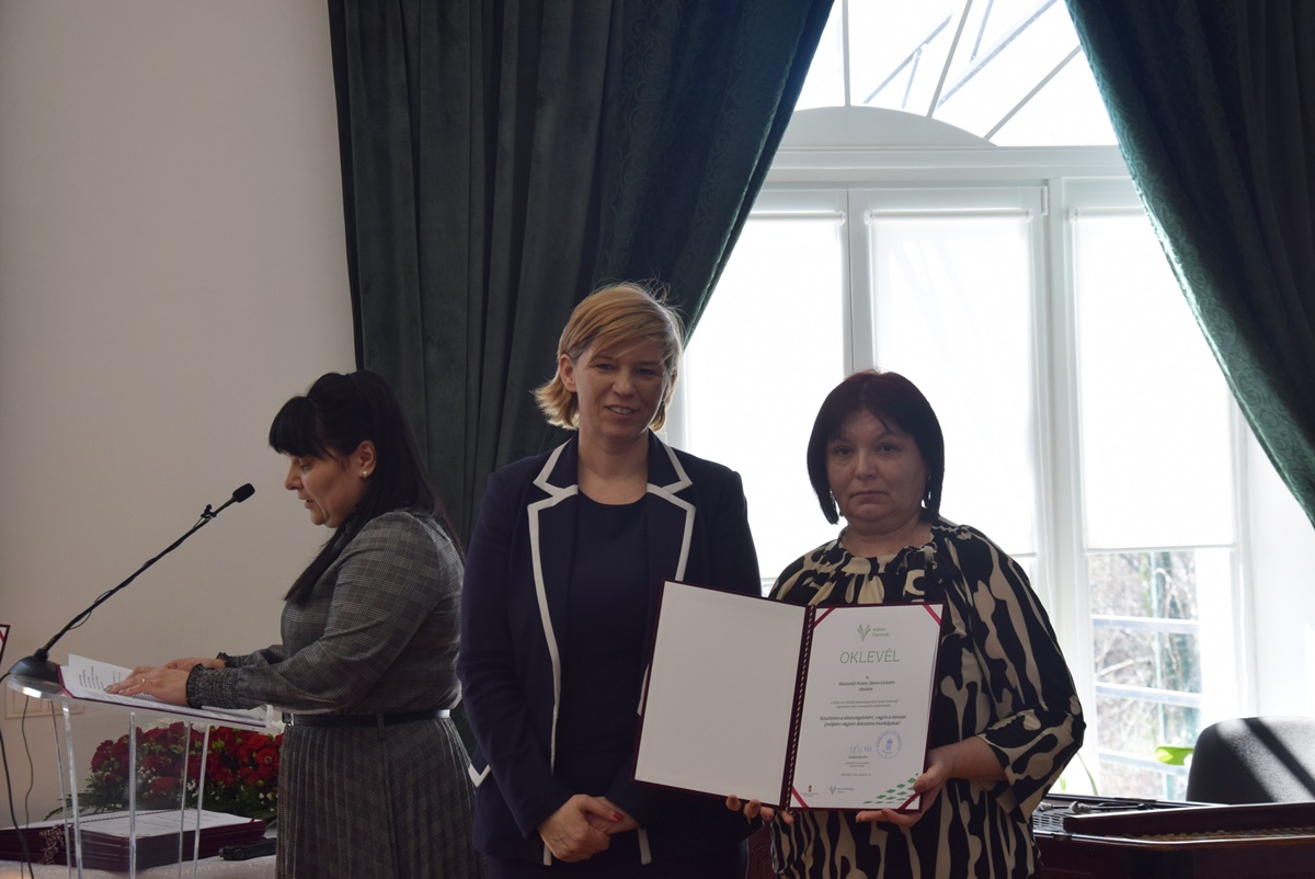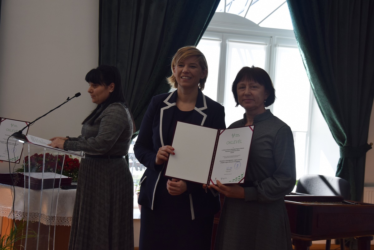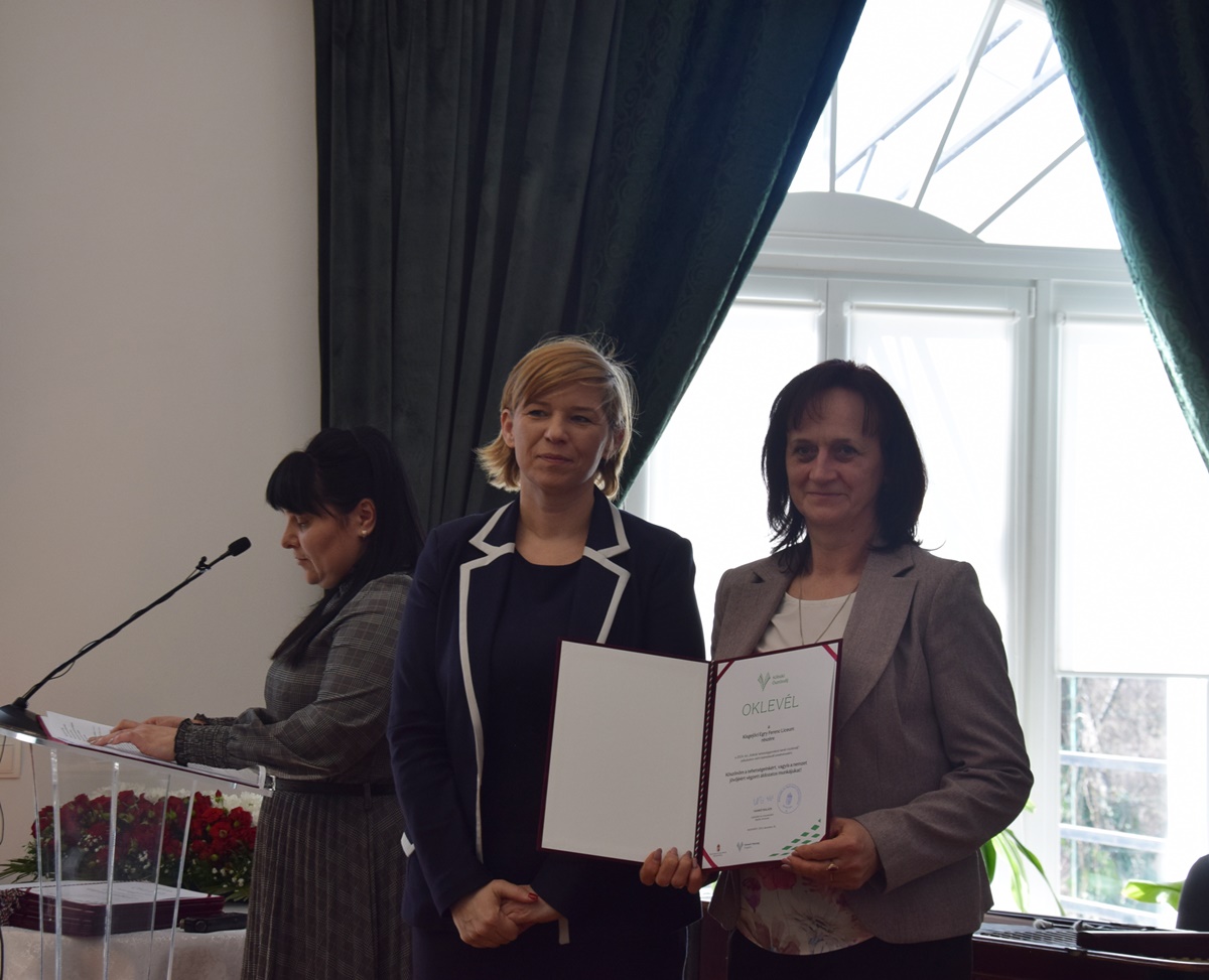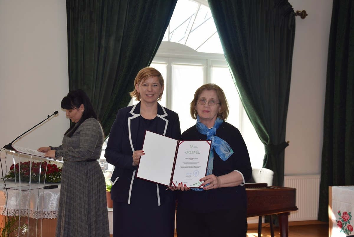 congratulated the teachers Natália Váradi, head of the Adult Education Center at the Rákóczi College and director of the “GENIUS” Charity Foundation.