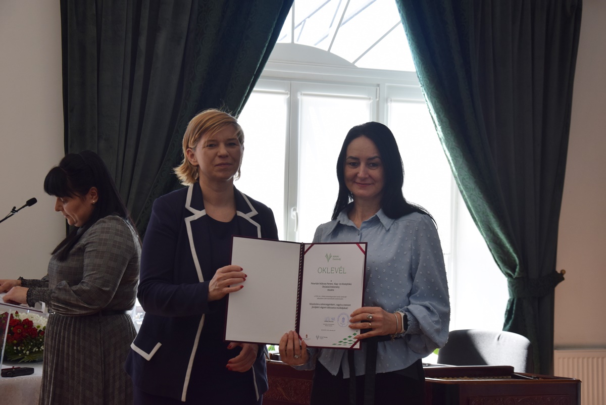 Following this, the teachers from the Gábor Bethlen Lyceum in Beregszász, the Lajos Kossuth Lyceum in Beregszász, the István Széchenyi Lyceum in Csap, the High School in Eszeny, the Rákóczi College’s Vocational High School, the Lajos Kajdi High School in Gecse, and the High School in Gyula received their certificates.