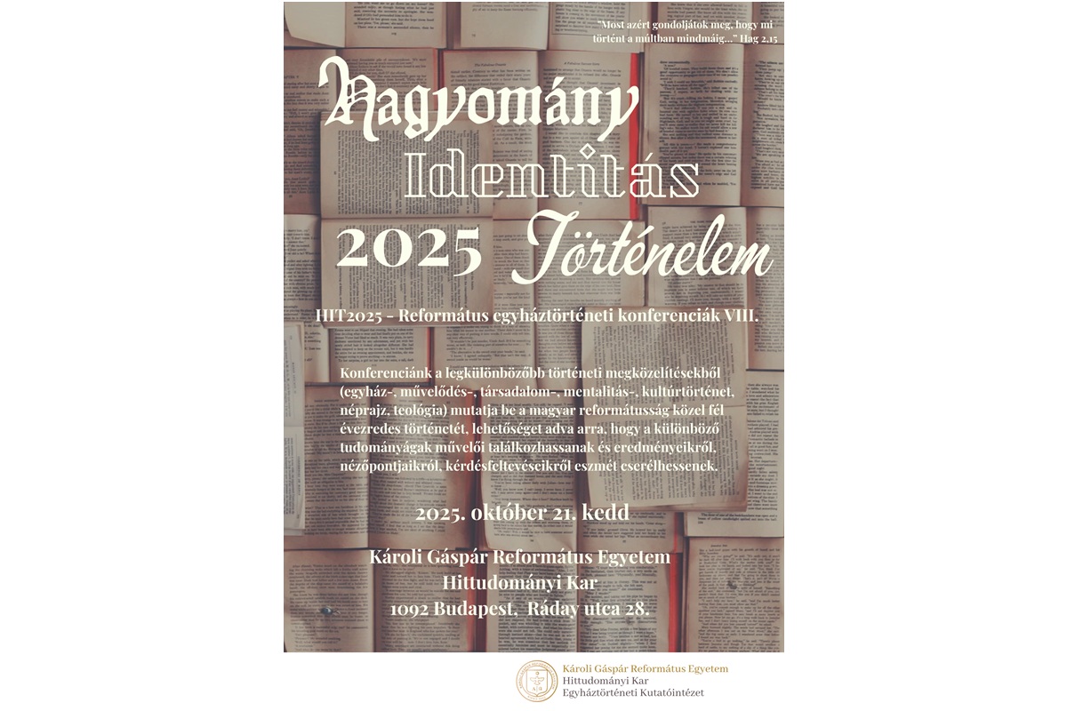 The aim of the conference is to examine the nearly half-millennium history of Hungarian Reformed Christianity from as many historical perspectives as possible (church, cultural, social, mental, cultural history, ethnography, theology), providing an opportunity for scholars from different disciplines to meet and discuss their findings and perspectives. theology) and to provide an opportunity for scholars from different disciplines to meet and exchange ideas about their findings, perspectives, and questions.
