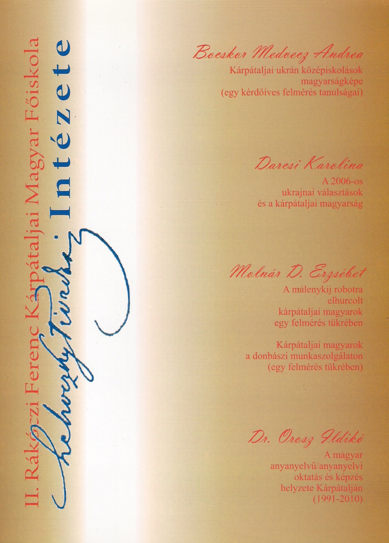 • Karrier-utak vagy parkoló-pályák? Friss diplomások karrierje, migrációs tendenciája (MTAKI) — a kutatás során megvizsgáltuk, a kárpátaljai felsőoktatási intézmények szerkezetét, statisztikai adatok alapján, valamint a továbbtanulási lehetőségek alakulását, azon belül a kárpátaljai magyarok felsőfokú képzésben való részvételi arányát az általunk vizsgált periódusban, vagyis 1996-2006 között. Továbbá a kárpátaljai magyarok képzettségi szintjét, különös tekintettel részvételükre a felsőoktatásban.
