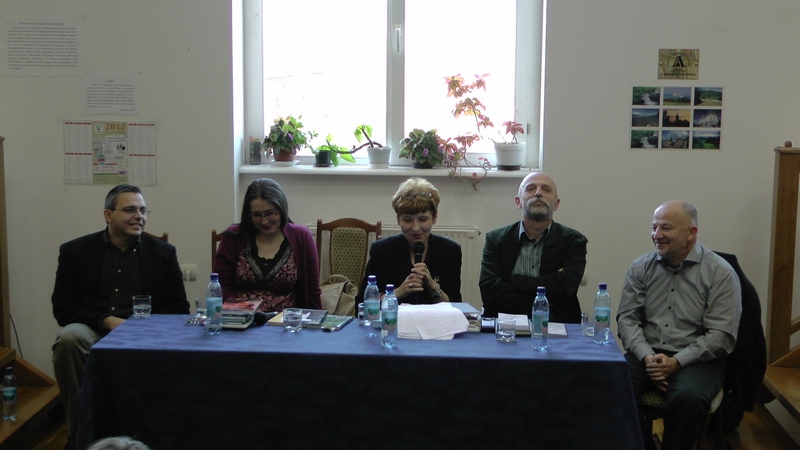 2012. április 26. Találkozó a Szépírók Társaságának tagjaival: Dragomán Györggyel, Szabó T. Annával, Visky Andrással és Láng Zsolttal.