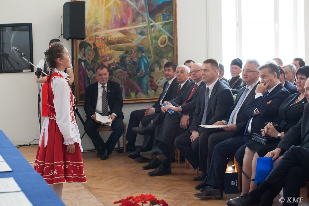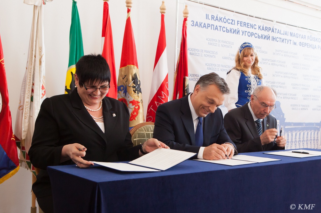 2013. április 26. Orbán Viktor látogatása a főiskolán. Elvi megállapodás aláírása Magyarország kormánya és a II. Rákóczi Ferenc Kárpátaljai Magyar Főiskola között a kárpátaljai magyar felsőoktatás fejlesztése érdekében történő együttműködésről.
