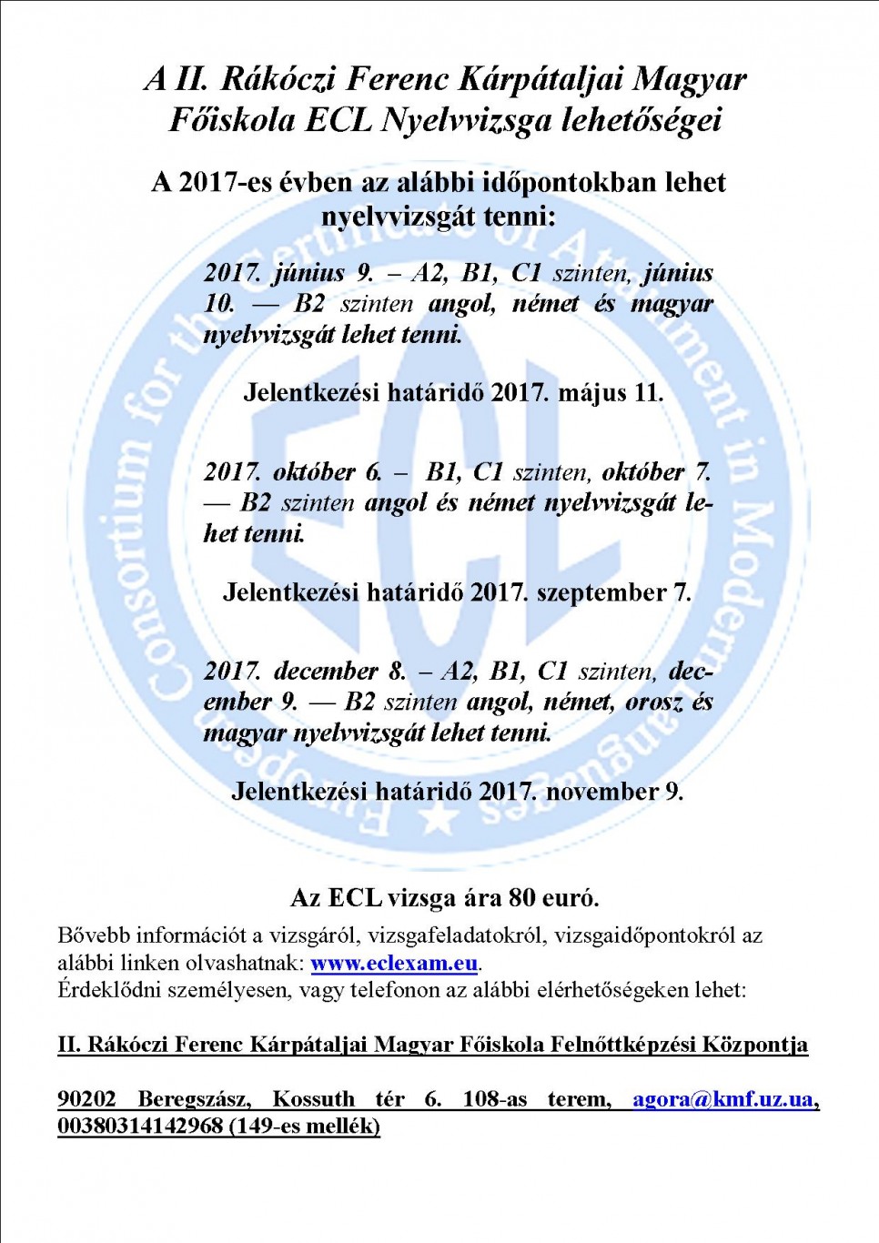 A II. Rákóczi Ferenc Kárpátaljai Magyar Főiskola ECL Nyelvvizsga lehetőségei