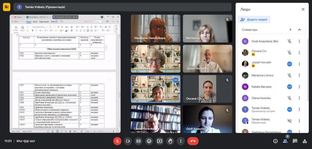 A találkozó során az oktatási és tudományos program kidolgozói figyelembe vették az ukrán Oktatási és Tudományos Minisztérium ajánlásait, a szerzett tapasztalatokat, a külső érdekeltek és a program kidolgozásában részt vevő diákok javaslatait. Horenko Olena, a filológiai tanszék docense és a külső érdekeltek (Olekszandr Rebrij, a filológia doktora, professzor, a V. N. Karazin Harkivi Nemzeti Egyetem Mikola Lukas Fordítástudományi Tanszékének vezetője, Horváth József, PhD, a Pécsi Tudományegyetem Angol Nyelv és Alkalmazott Nyelvészet Tanszékének docense Magyarországról, Fischer Mária, az „Advance” Kárpátaljai Fejlesztési és Konzultációs Központ Jótékonysági Alapítvány igazgatója, Beregszász, Risko Okszana, a Wood International LLC referense-fordítója) pozitívan értékelték az oktatási program módosítására vonatkozó konstruktív javaslatokat.