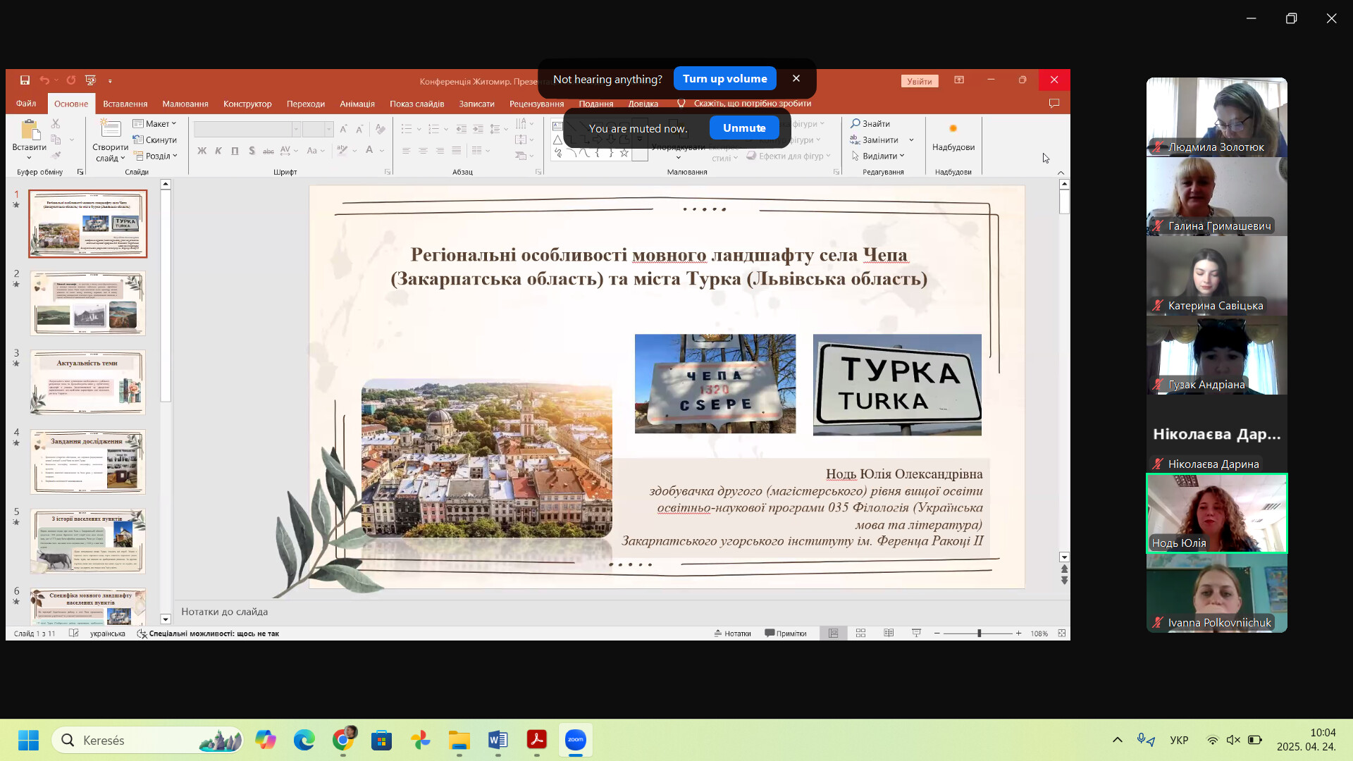 Nagy Júlia előadásában a Kárpátalja megyei Csepe község és a Lemberg megyei Turka város nyelvi interakcióinak sajátosságait mutatta be, míg Popovics Natália a Beregszászi járási Kaszonyi kistérség nyelvi interakcióinak sajátosságai címmel tartott előadást.