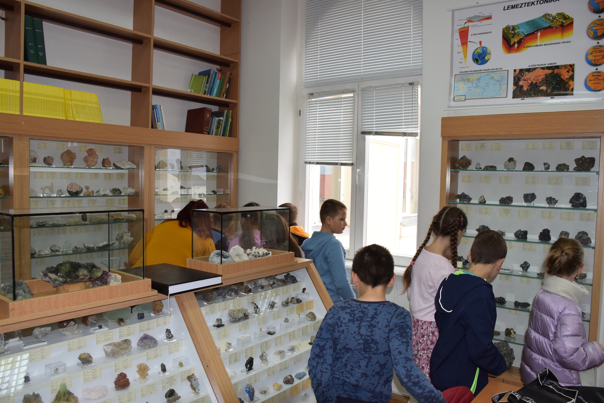Gyakorlati óra keretén belül megnézhették a számukra már ismert ásványokat és kőzeteket. Ezt követően fontos információt hallhattak az ásványtár ritka példányairól.