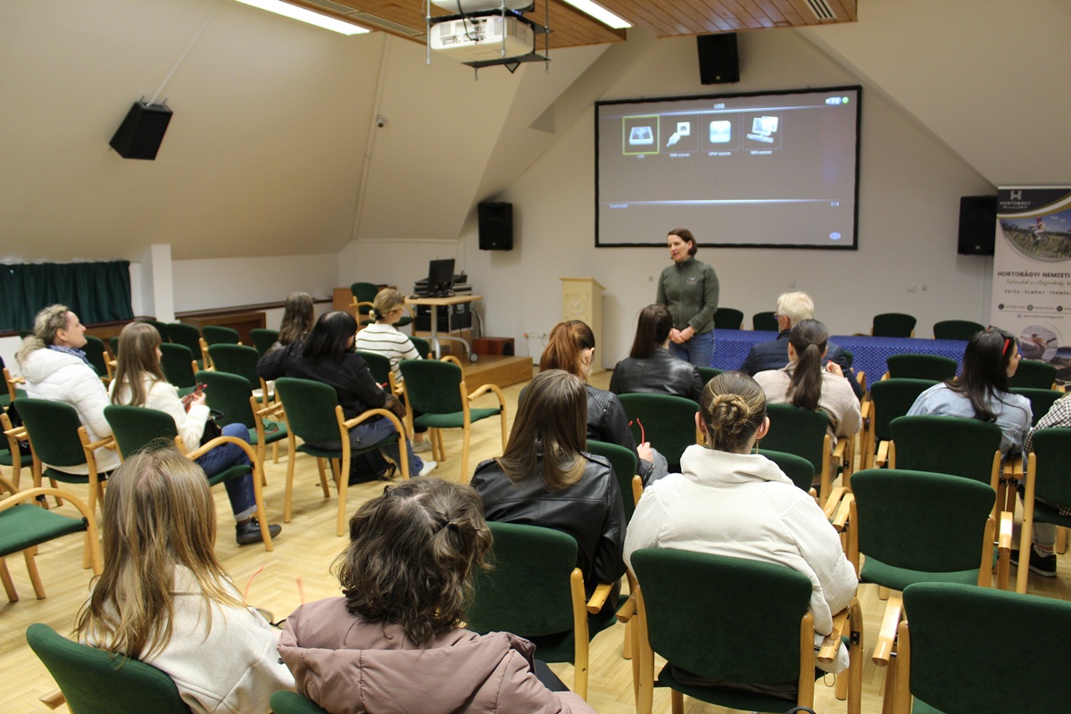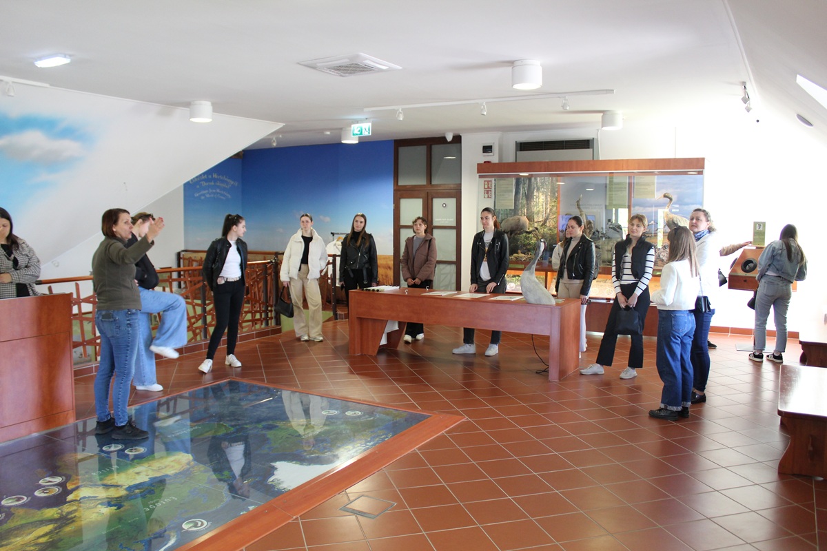 A hallgatók a Hortobágyi Nemzeti Park Igazgatóság Látogatóközpontját is megtekintették, ahol Szilágyiné Pusztai Dorottya csoportvezető, környezeti nevelő tartott bemutatót a nemzeti park környezeti nevelési programjairól, a hortobágyi állattartás hagyományairól, valamint ismertette a tavaszi Hortobágy élővilágát is egy 3D-s film segítségével. A Pásztormúzeumban a hagyományos pásztorkultúra értékeit ismerhették meg, továbbá egy ismeretterjesztő kisfilmet is megtekintettek a tájhasználat múltjáról és jelenéről.