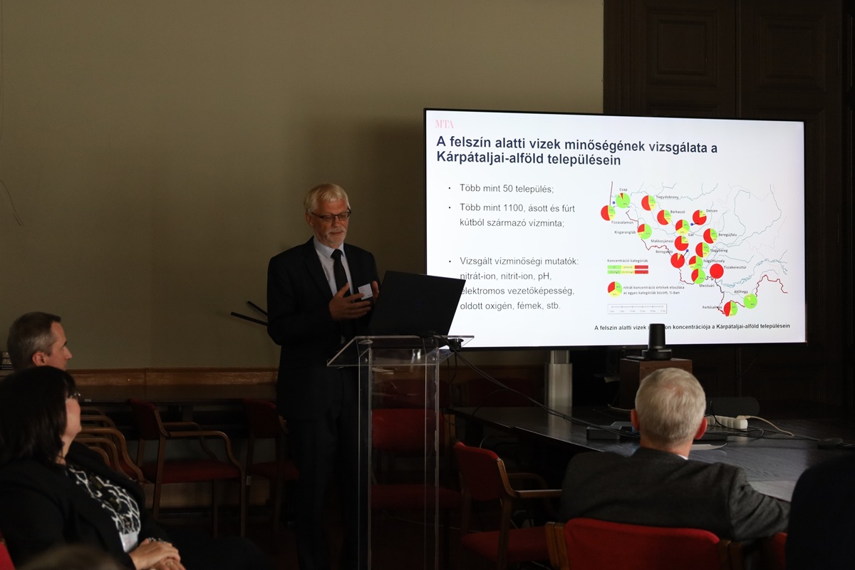 Dr. Molnár József a Földrajzi kutatások Kárpátalján című előadásában részletesen beszámolt a Földrajz és Turizmus Tanszék széles körű természetföldrajzi, társadalomföldrajzi és gazdaságföldrajzi kutatási eredményeiről.