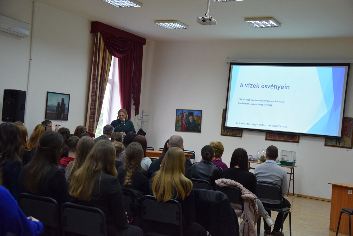 Kovács Tibor bevezetőjében ismertette a szervezetük megalakulásának, tevékenységi körének történetét, majd megtartotta A Kis-Balaton tájtörténete és természetvédelmi kérdései című előadását, melyből közelebbről is megismerhettük a Kis-Balaton növény- és állatvilágát, azt, hogy az iparosodás és a történelmi változások hogyan hatottak erre a tájra s annak élővilágára.
