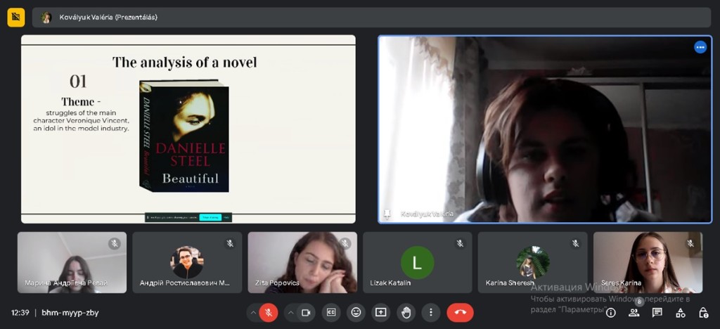 Kovaljuk Valéria az Életigenlő filozófia megjelenése Danielle Steel Szép c. regényében címmel tartott előadást, amelyben hangsúlyozta a regényben felvetett erkölcsi és etikai kérdések jelentőségét.