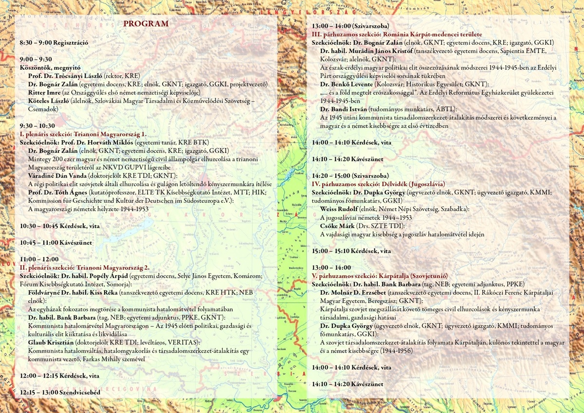 A konferencia plenáris és párhuzamos szekcióiban anyaországi és külhoni egyetemek oktatói, kutatóprofesszorai és történészei tartottak előadásokat, akik a korszak politikai, társadalmi és jogi folyamatait különböző tudományterületek szemszögéből vizsgálták. A résztvevők között szerepelt dr. Molnár D. Erzsébet, a II. Rákóczi Ferenc Kárpátaljai Magyar Egyetem Történelem- és Társadalomtudományi Tanszékének vezetője is, aki A Kárpátalja szovjet megszállását követő tömeges civil elhurcolások és kényszermunka társadalmi, gazdasági hatásai című előadásában a térség lakosságát sújtó deportálások és kényszermunka komplex társadalmi és gazdasági következményeit elemezte.