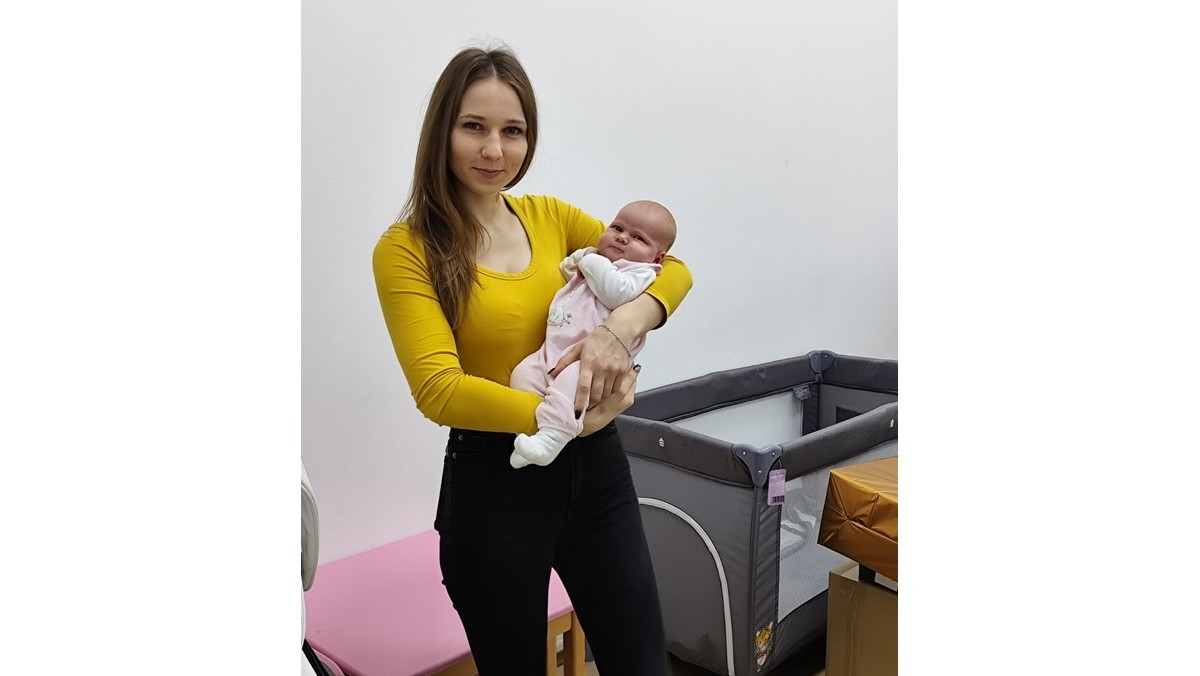 A babát az anyukája mellett az apukája is elkísérte a vizsgára.
