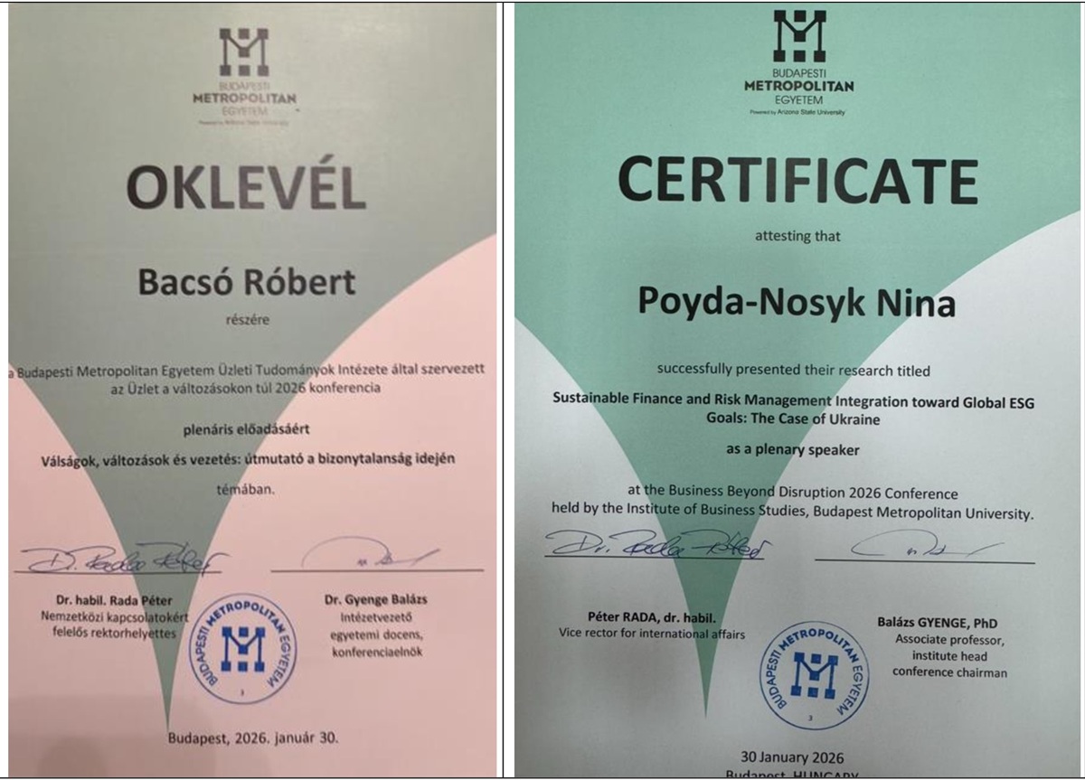 2026. január 30-án a Rákóczi Egyetem Számvitel és Auditálás Tanszékének professzorai, Bacsó Róbert és Pojda-Noszik Nina részt vettek a Budapesti Metropolitan Egyetem által szervezett The Business Beyond Disruption 2026: Flexibility, Responsibility & Renewal című nemzetközi tudományos konferencián.