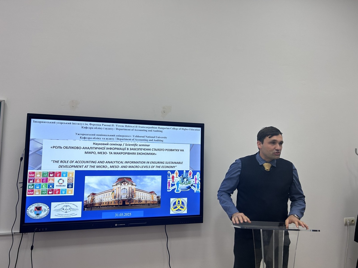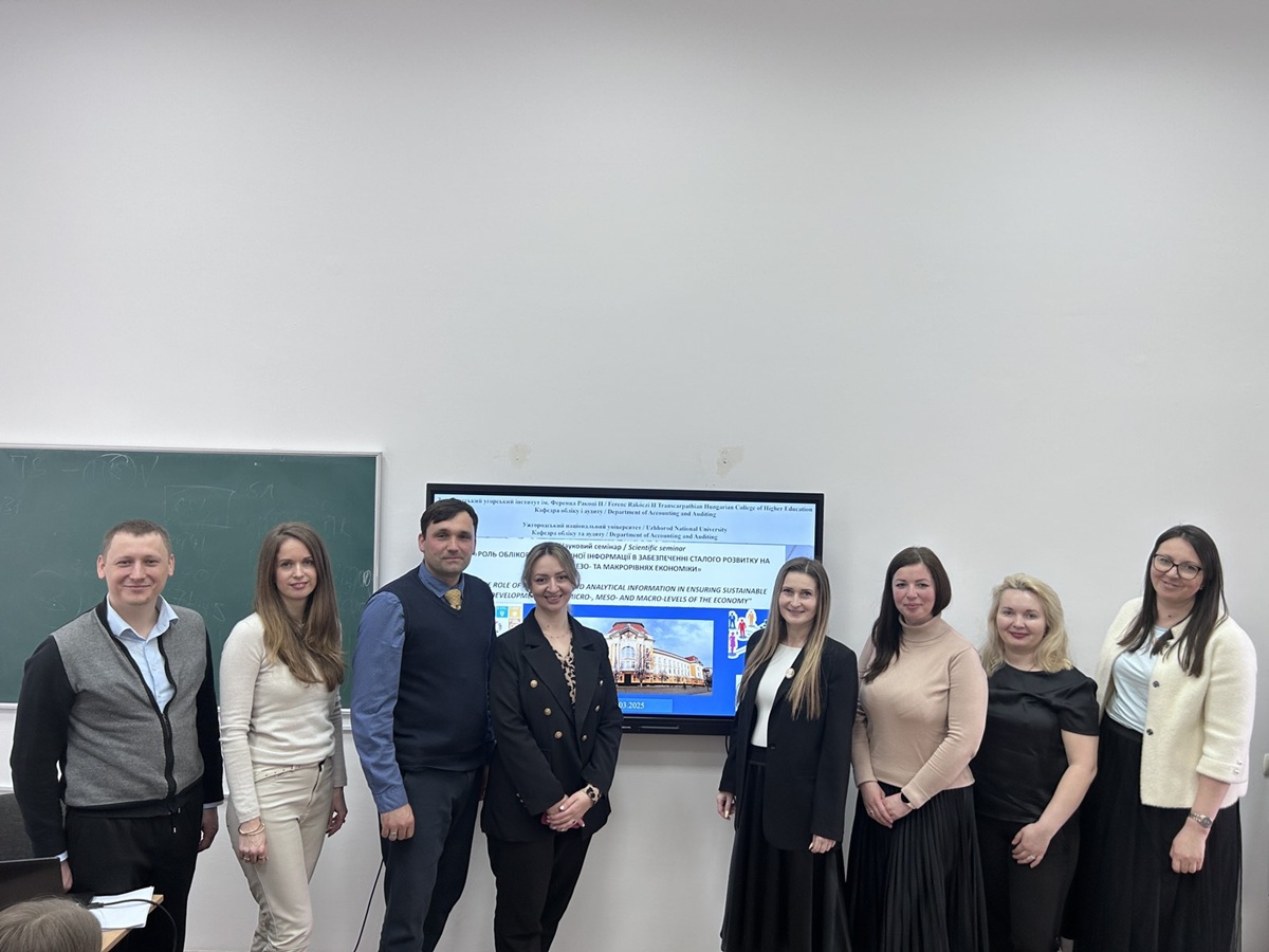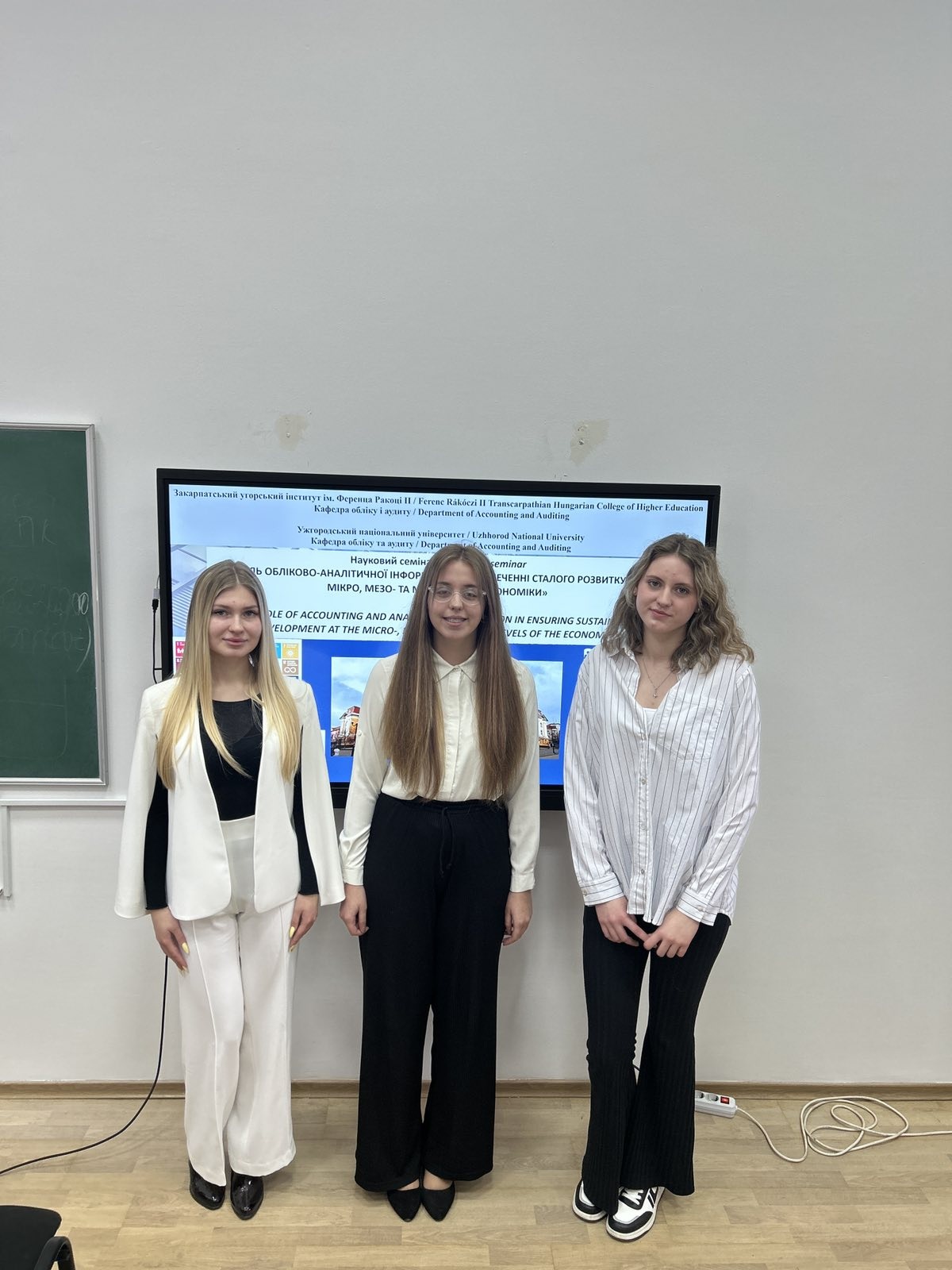 A rendezvényre 2025. március 31-én került sor a II. RF KMF Számvitel és Auditálás Tanszékének bázisán. A szeminárium szervezői a mester- és alapképzéshez tartozó hallgatói tudományos diákkörök vezetői voltak – dr. Hanuszics Veronika egyetemi docens, valamint dr. Loszkorih Gabriella tanszékvezető-helyettes, egyetemi docens. Az Ungvári Nemzeti Egyetem részéről a szeminárium társszervezője dr. Joltuhovszka Okszana egyetemi docens volt. A találkozó célja a gazdasági rendszerek fenntarthatóságának értékelésére vonatkozó korszerű tudományos megközelítések megvitatása, valamint a vezetői döntések elemzési megalapozásával kapcsolatos tapasztalatcsere volt.