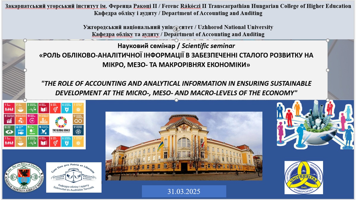 A modern közgazdaság-tudomány gyors ütemű fejlődése új kihívások elé állítja a szakembereket, amelyek megkövetelik a számvitel és elemzés szerepének újragondolását a fenntartható fejlődés biztosításában a modern gazdaság minden szintjén. E kihívásokra válaszul a II. Rákóczi Ferenc Kárpátaljai Magyar Főiskola (II. RF KMF) Számvitel és Auditálás Tanszéke az Ungvári Nemzeti Egyetem munkatársaival együttműködve tudományos szemináriumot kezdeményezett a következő témában: A számviteli-elemzési információ szerepe a fenntartható fejlődés biztosításában a gazdaság mikro-, mezo- és makroszintjén.