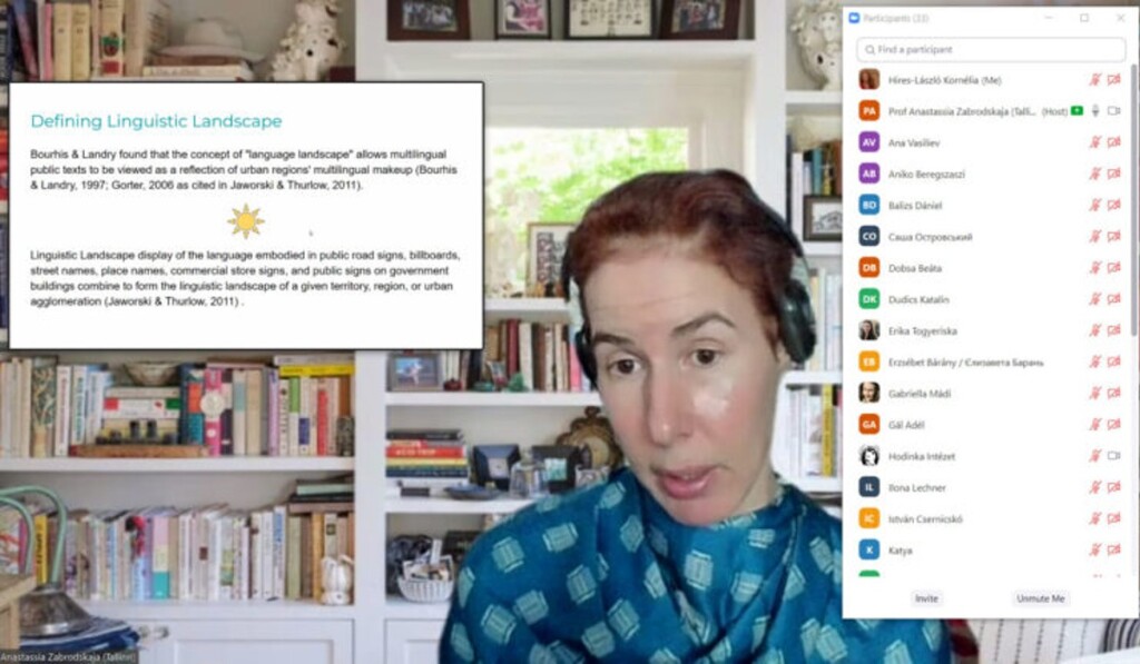 Az esemény vendégelőadója Anastassia Zabrodskaja, a Tallinni Egyetem nyelvészprofesszora volt, aki a kétnapos workshop során megismertette a hallgatósággal a nyelvi tájkép (Linguistic Landscape) kutatásának történeti hátterét, aktuális problémáit, kutatási módszereit. Az esemény kezdetén Csernicskó István, főiskolánk rektora köszöntötte a közönséget, s üdvözölte a messziről “érkező” vendéget. Mivel a járvány miatti korlátozások sajnos továbbra sem teszik lehetővé a szabad utazást, így ez alkalommal az online térbe kényszerülve, ám annál nagyobb érdeklődéssel látott munkához az alap- és mesterképzésben részvevő hallgatókból, oktatókból és kutatókból verbuválódott csapat, akikhez más, a főiskolával szakmai kapcsolatot ápoló intézmények diákjai, munkatársai is csatlakoztak.