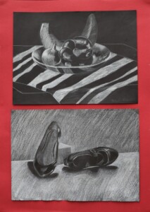 Miért is elfeledettek ezek a munkák? Sok diák nem viszi magával az alkotásait, és így az osztályozás után hátrahagyott munkák a szaktantermek raktárjainak polcaira kerülnek. A polcok lakói mellett kiegészítettük a tárlat anyagát olyan alkotásokkal, amelyek a koronavírus és a háborús időszak alatt készültek. Mivel nem állhat meg az alkotás, a szükséghelyzetben képernyők elé zárva, a Paint programban, ecset helyett- egérkattintgatással is készültek beadandók. A Google Classroomokba feltöltve, eddig csak adathalmazként éltek ezek a munkák a digitális térben várva, a tárhelyek megtelésével, a végtelen kukákba való száműzetést.