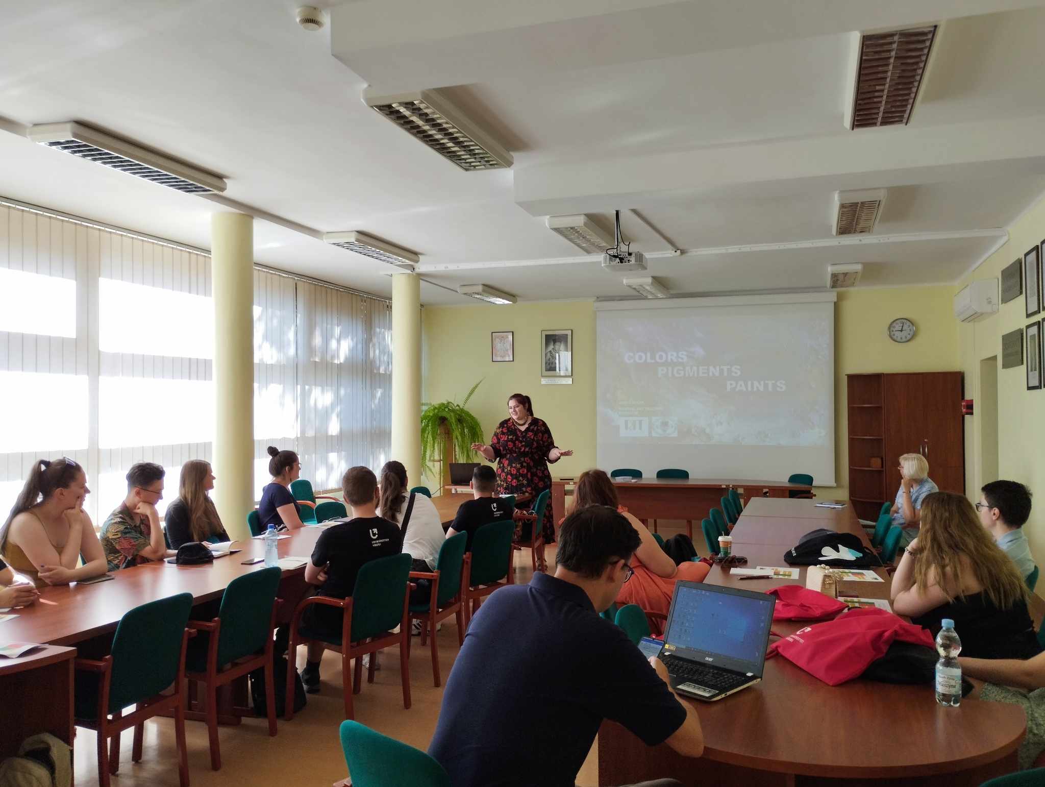 Az angol nyelven megrendezett műhelymunkán a Színek-Pigmentek-Festékek című prezentációjával a képzőművészetek és kémia kapcsolatára hívta fel figyelmet Kulin Ágnes. Az előadáson körbejárt témakörök az alábbiak voltak: