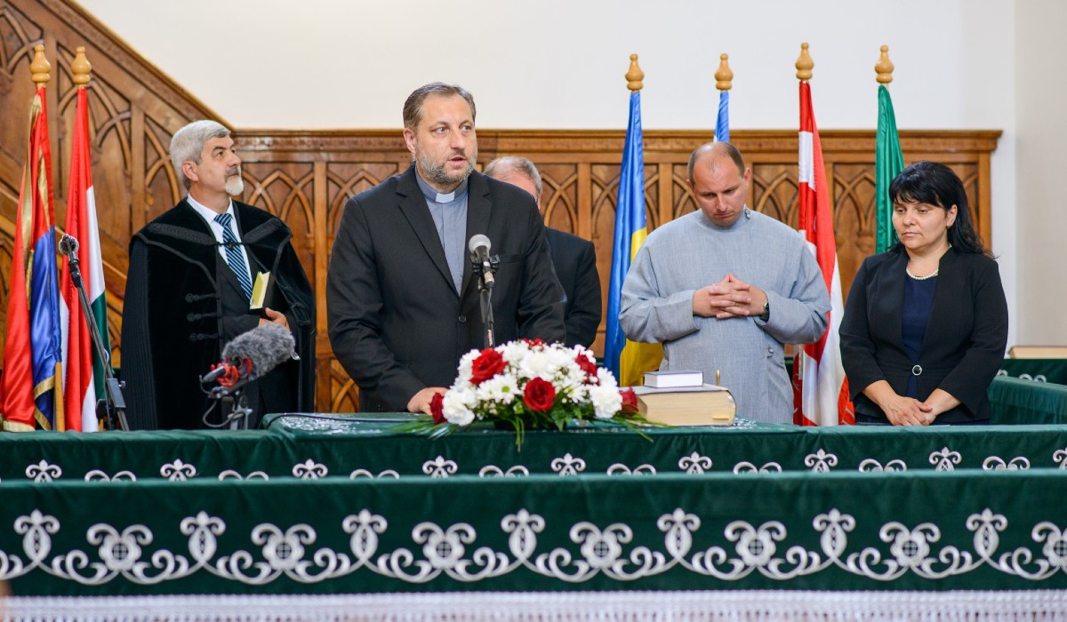 A végzős hallgatók nevében Maruszics Erik történelem és régészet (MA) szakos hallgató mondott köszönetet. Ezután a diákok fogadalomtétele következett.