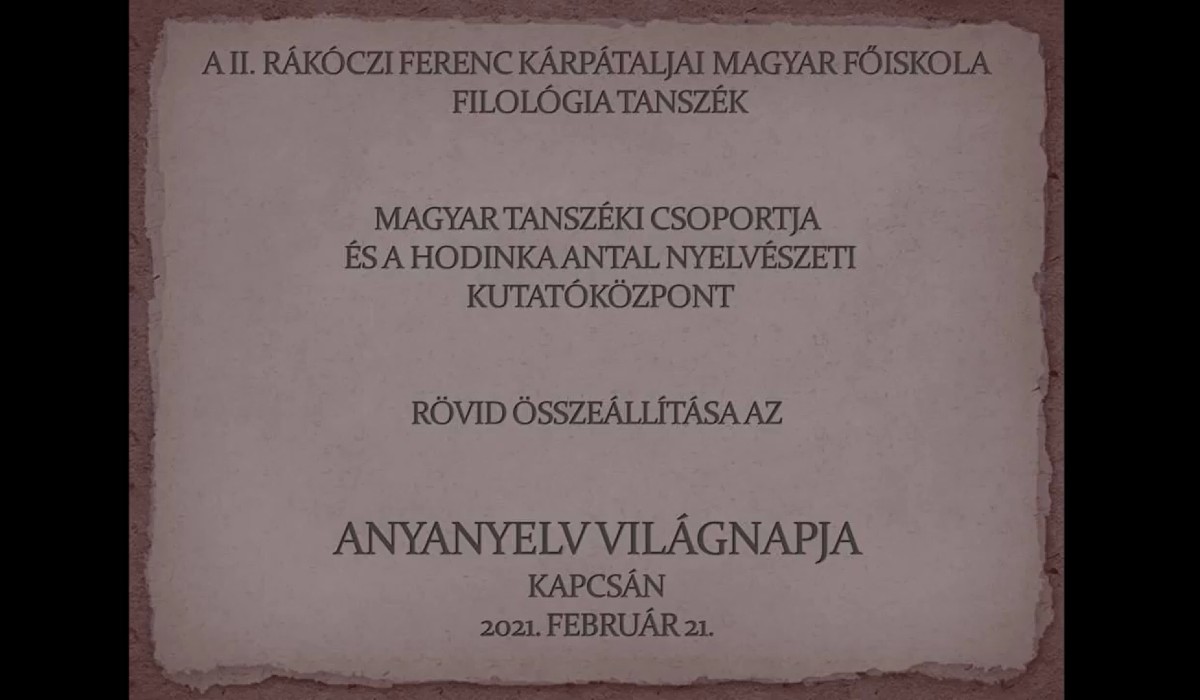 A világnap alkalmából a II. Rákóczi Ferenc Kárpátaljai Magyar Főiskola Magyar Tanszéki Csoportja és a Hodinka Antal Nyelvészeti Kutatóközpont rövid videóösszeállítást készített. Míg korábban népes rendezvények, hangulatos színjátékok keretében emlékeztek e napra, addig most különböző helyszínekről és országokból bekapcsolódva sikerült összeállítani egy megemlékezést videó formájában.