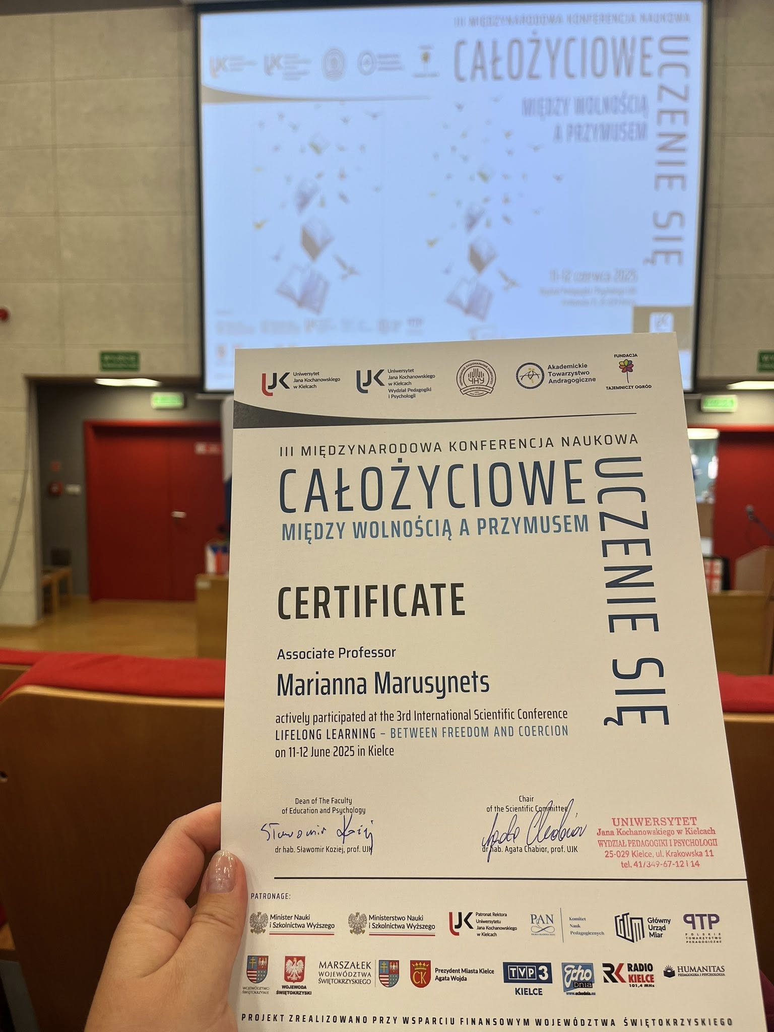 2025. június 11–12-én a lengyelországi Kielcében került sor az Élethosszig tartó tanulás – szabadság és kényszer között címmel megrendezett III. Nemzetközi Tudományos Konferenciára. A Jan Kochanowski Egyetemen szervezett rangos tudományos eseményen 16 országból 160 előadó érkezett, akik 71 kutatóintézményt képviseltek – ebből 37 belföldi és 34 külföldi résztvevő volt.