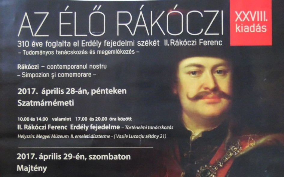 AZ ÉLŐ RÁKÓCZI című konferencia és megemlékezés immár 18. alkalommal került megrendezésre Szatmárnémetiben és a Nagymajtényi síkon. Április 28-án nemzetközi tudományos konferenciára került sor. Ez alkalommal a történésztanácskozás II. Rákóczi Ferenc Erdély fejedelmi székének elfoglalásához kapcsolódott. A Szatmári Múzeumban tartott konferencián négy ország –Magyarország, Szlovákia, Románia, Ukrajna – Rákóczi-kutatói vettek részt, továbbá a résztvevők molinós kiállítást tekinthettek meg a Vajai vár történetéről. A II. Rákóczi Ferenc Kárpátaljai Magyar Főiskolát dr. Csatáry György, Rákóczi-kutató képviselte, aki „Északkeleti vármegyék társadalma II. Rákóczi Ferenc fejedelemmé választása idején” címmel tartott előadást.