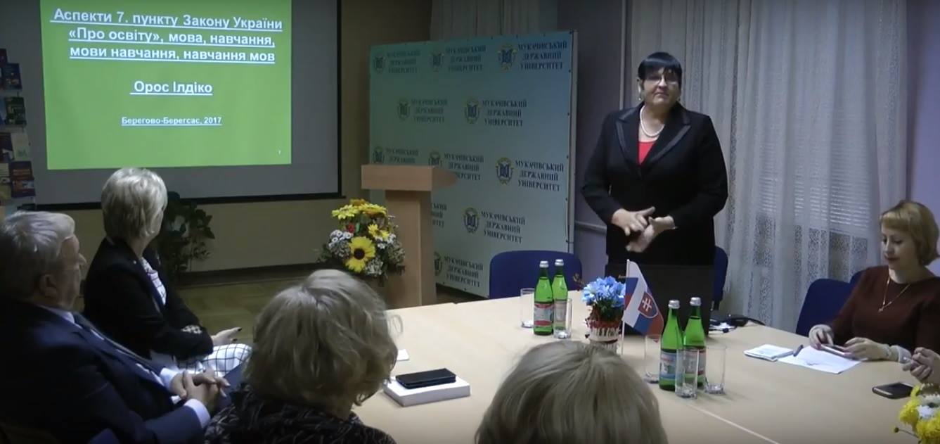Dr. Orosz Ildikó, a II. Rákóczi Ferenc Kárpátaljai Magyar Főiskola rektora Az oktatásról szóló törvény 7. cikkelyének aspektusai: a nyelv, az oktatás, az oktatás nyelve és a nyelvek oktatása címmel tartott előadást.