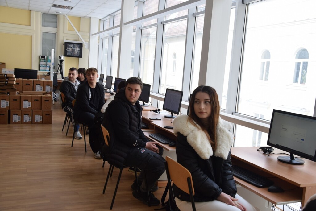 A jelenlévőket Benedek Viktória, a Földrajz és Turizmus Tanszék koordinátora, valamint Silkina Heléna laboráns köszöntötte, kiemelve, hogy nyolc évvel ezelőtt kérték fel főiskolánkat, hogy csatlakozzon a Felsőoktatási Tanintézmények Összukrajnai Diákolimpiájához.