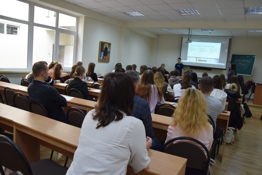 A jelenlévők Máté Dávid 035 Filológia (ukrán nyelv és irodalom) szakos hallgató előadását hallhatták, aki az ukrán nyelv érdekességeit osztotta meg a hallgatósággal.