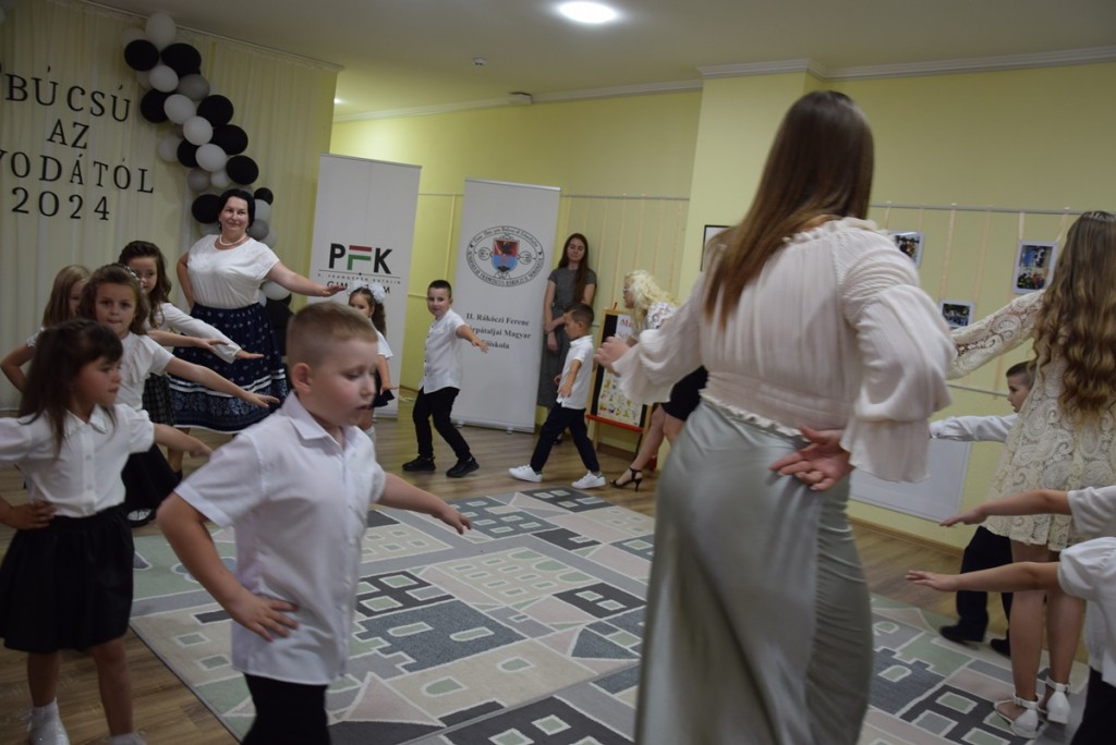 Őket követte a Méhecske Csoport 16 növendéke, akik Halász Andrea és Veres Emília óvónők, valamint Marosi Andrea szociálpedagógus vezetésével mutatták be mindazt, amit az eltelt évek alatt elsajátítottak. Ők is szívesen tanultak népi játékokat és táncokat, valamint ukránul és angolul is elsajátították a különböző verseket, dalokat. S mint előző nap, itt sem maradhatott el az oklevelek és az ajándékcsomagok átadása, melyeket a kicsik Bedő Andzselikától, a P. Frangepán Katalin Gimnázium igazgatójától és Jakab Andreától, a P. Frangepán Katalin Gimnázium megbízott igazgatójától vehettek át.
