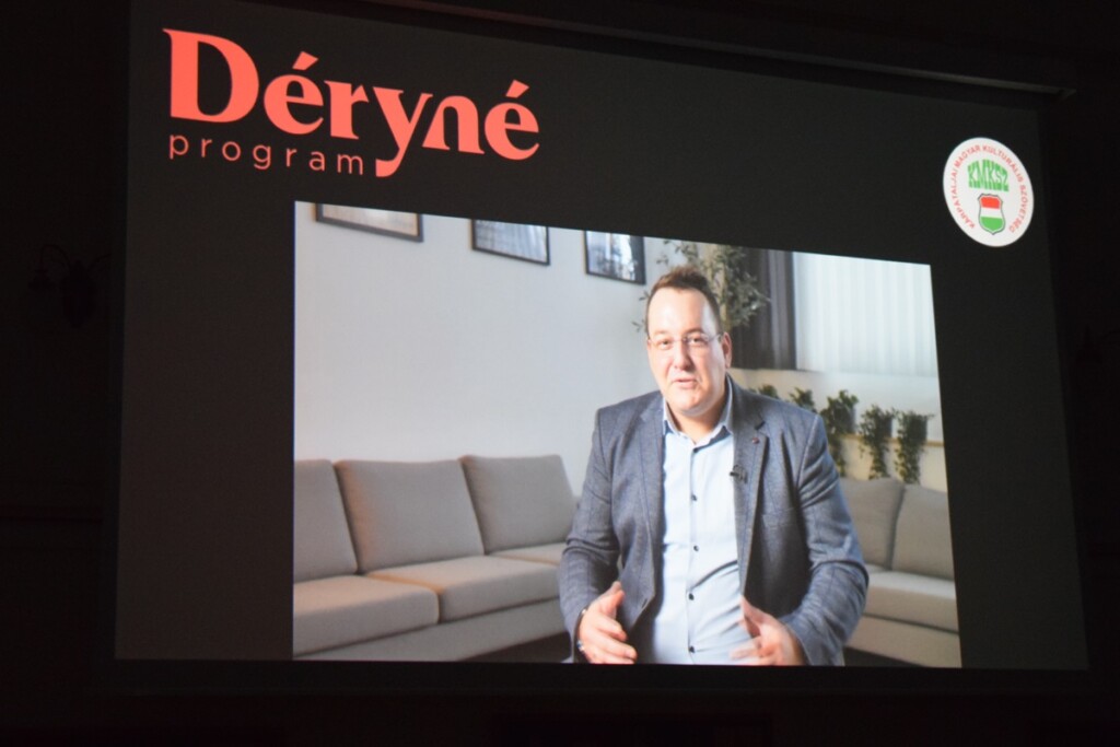 A jelenlévőket Kis Domonkos Márk, a Déryné program igazgatója, a Déryné ifjasszony tévéjáték tulajdonosa video üzenetben köszöntötte. Kiemelte, a művel a magyar nyelvű színjátszás hősei előtt tisztelegnek.